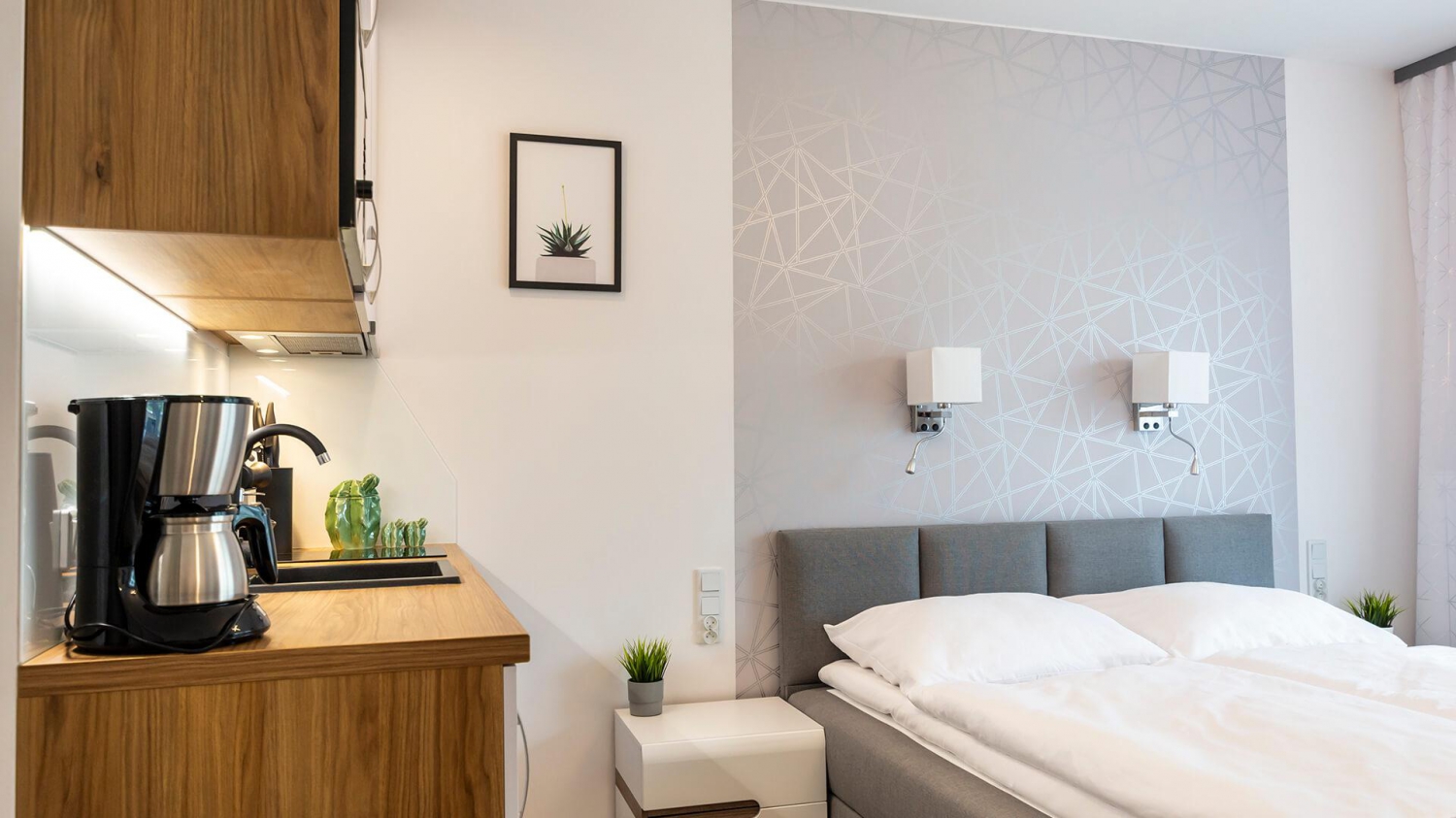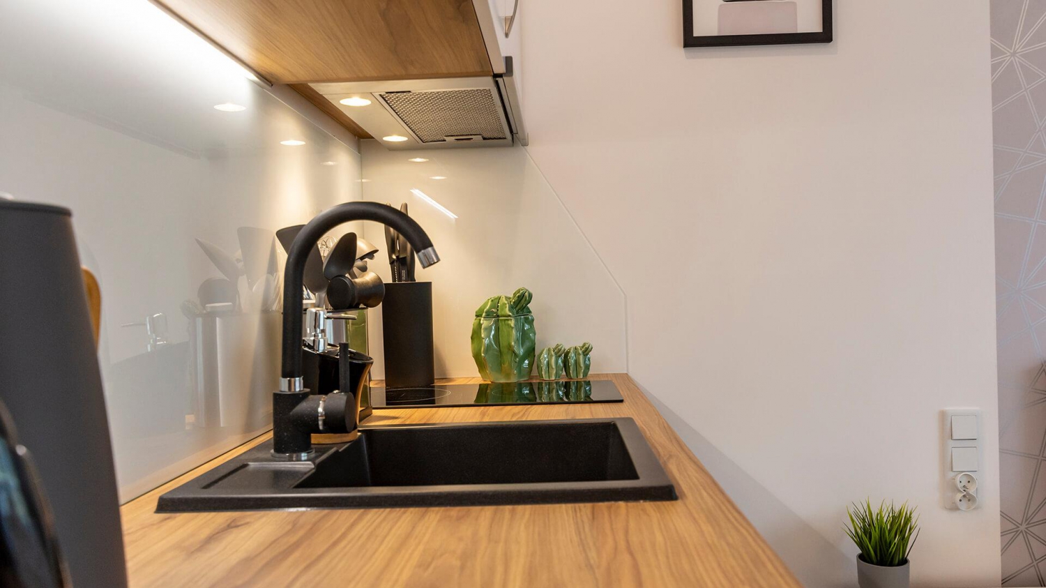 W apartamencie znajduje się w pełni wyposażony aneks kuchenny. Do dyspozycji Gości jest lodówka, zmywarka, płyta grzewcza, kuchenka mikrofalowa, ekspres do kawy, toster oraz komplet naczyń wraz z zestawem narzędzi kuchennych potrzebnych do wspólnego biesiadowania również na słonecznym tarasie słuchając szumu morza.
