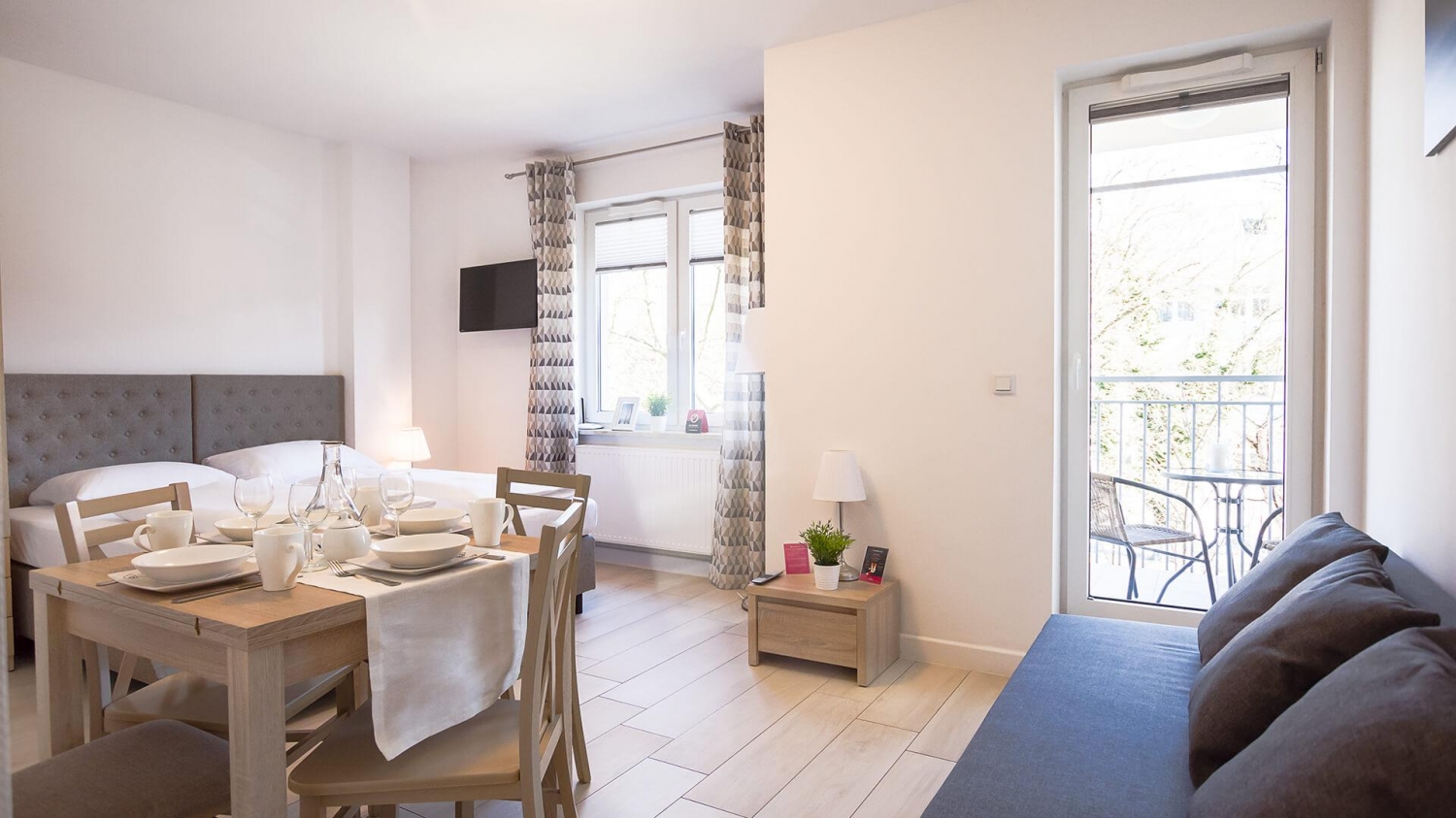 VacationClub™ – Aquamarina Apartament C-05 mieści się na pierwszym piętrze nowoczesnego budynku położonego w dzielnicy nadmorskiej w drugim pasie zabudowy od słynnej świnoujskiej Nowej Promenady, zaledwie 350 m od wejścia na plażę. Apartament jest gustownie urządzony i w pełni wyposażony. Składa się z przedpokoju z aneksem kuchennym, salonu z wygodnym podwójnym łóżkiem i rozkładaną dwuosobową sofą oraz łazienki z kabiną prysznicową. Przestrzeni i światła dodaje duży balkon. Do dyspozycji Gości jest telewizja oraz bezpłatny bezprzewodowy dostęp do Internetu. Niewątpliwym udogodnieniem jest umiejscowienie Apartamentu na końcu korytarza, możliwość rezerwacji drugiego przyległego lokalu a także większego w tym samym budynku. Bezpieczeństwo w obiekcie zapewnia całodobowa ochrona.