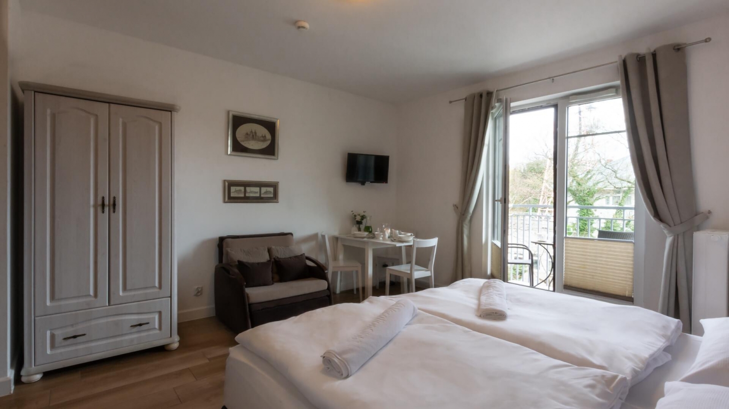 VacationClub™ – Aquamarina Apartament C-19 mieści się na drugim piętrze nowoczesnego budynku, położonego w dzielnicy nadmorskiej w drugim pasie zabudowy od słynnej świnoujskiej Nowej Promenady, zaledwie 350 metrów od wejścia na plażę. Apartament jest stylowo i elegancko urządzony i w pełni wyposażony. Składa się z przedpokoju z aneksem kuchennym, salonu z wygodnym podwójnym łóżkiem i rozkładanym jednoosobowym fotelem oraz łazienki z kabiną prysznicową. Przestrzeni i światła dodaje duży balkon. Do dyspozycji Gości jest telewizja oraz bezpłatny bezprzewodowy dostęp do Internetu. Niewątpliwym udogodnieniem jest umiejscowienie Apartamentu na końcu korytarza, a także możliwość rezerwacji podobnych w tym samym budynku. Bezpieczeństwo w obiekcie zapewnia całodobowa ochrona. Do apartamentu przynależy miejsce postojowe w garażu podziemnym nr 64.