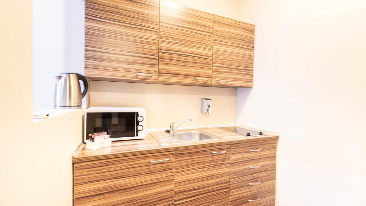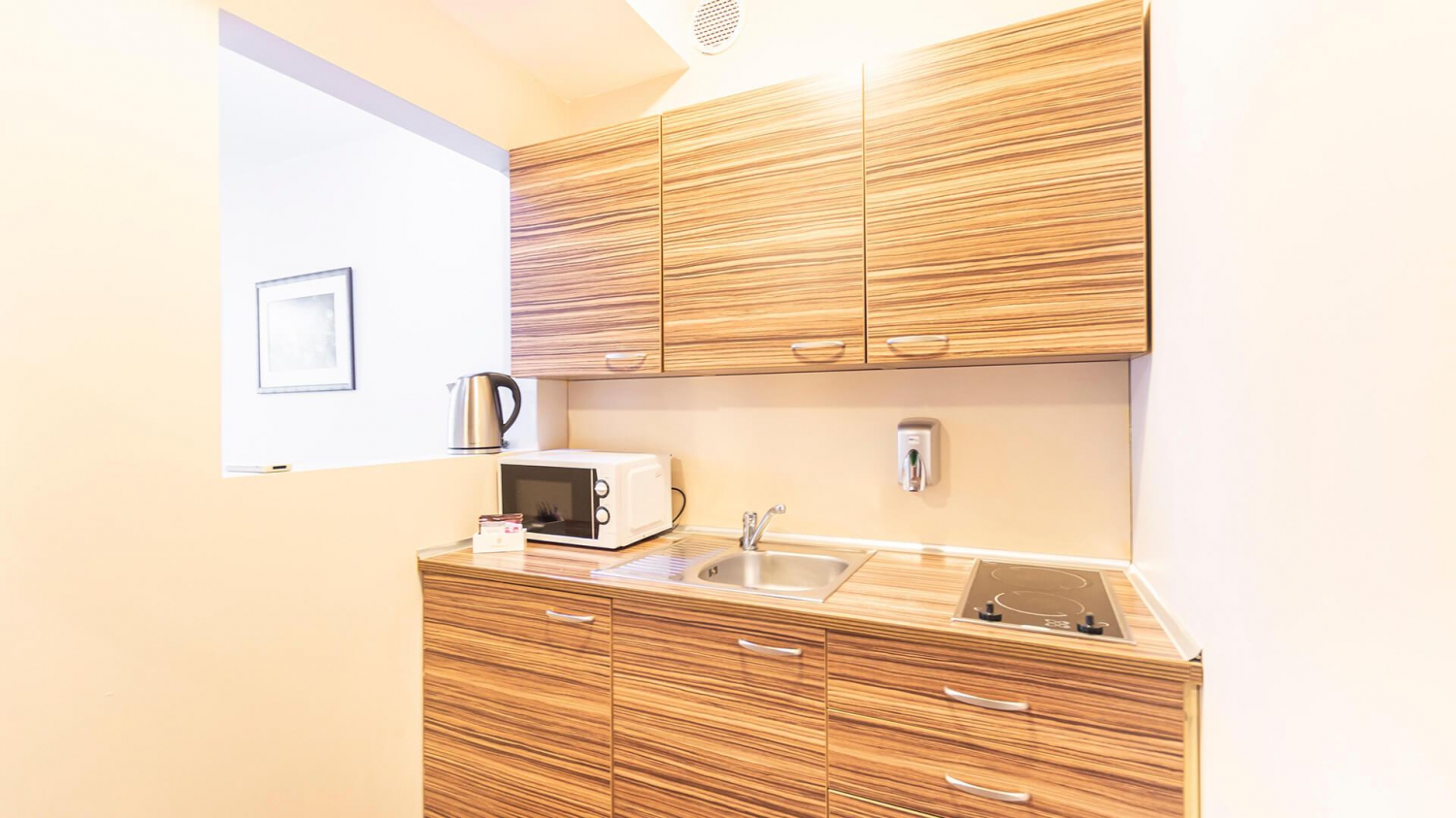 W apartamencie znajduje się aneks kuchenny przystosowany do zaspokajania codziennych potrzeb. Do dyspozycji Gości są sprzęty AGD m.in. lodówka, płyta indukcyjna z okapem, mikrofalówka oraz komplet naczyń, sztućce, akcesoria kuchenne, szklanki i kieliszki do wina. Wszystko, co potrzebne by samodzielnie przygotować posiłki i cieszyć się wspólnymi chwilami z bliskimi.