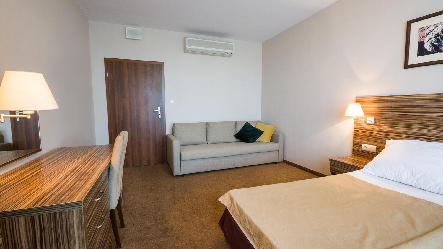 VacationClub™ – Arka Apartament 722 mieści się na 7. piętrze apartamentowca należącego do nowoczesnego kompleksu hotelowo-sanatoryjnego Arka Medical SPA★★★★, który położony jest tuż przy promenadzie nadmorskiej w otoczeniu Ekoparku oraz zaledwie 30 m od morza. W budynku głównym na 11 piętrze znajduje się obrotowa kawiarnia ElevenClub (40 minut obrót 360o) z cudownym widokiem na morze, molo i latarnię morską oraz druga kawiarnia Panorama z widokiem na miasto. Obiekt oferuje Gościom szereg atrakcji tj. wieczorne dancingi, koncerty, seanse filmowe i animowane, występy taneczne, a także kryty kort tenisowy, grota solna, ścianka wspinaczkowa, stół do bilarda i do ping-ponga (niektóre atrakcje odpłatne według cennika hotelowego). Lokal jest w pełni umeblowany i wyposażony. Apartament składa się z komfortowej sypialni z podwójnym łóżkiem oraz rozkładanej sofy 2-osobowej, przestronnego salonu z rozkładaną sofą, aneksu kuchennego oraz łazienki z kabiną prysznicową. Do apartamentu przynależy duży balkon położony od strony zachodniej z widokiem na morze. Na miejscu do dyspozycji Gości jest telewizja i bezpłatny bezprzewodowy Internet.