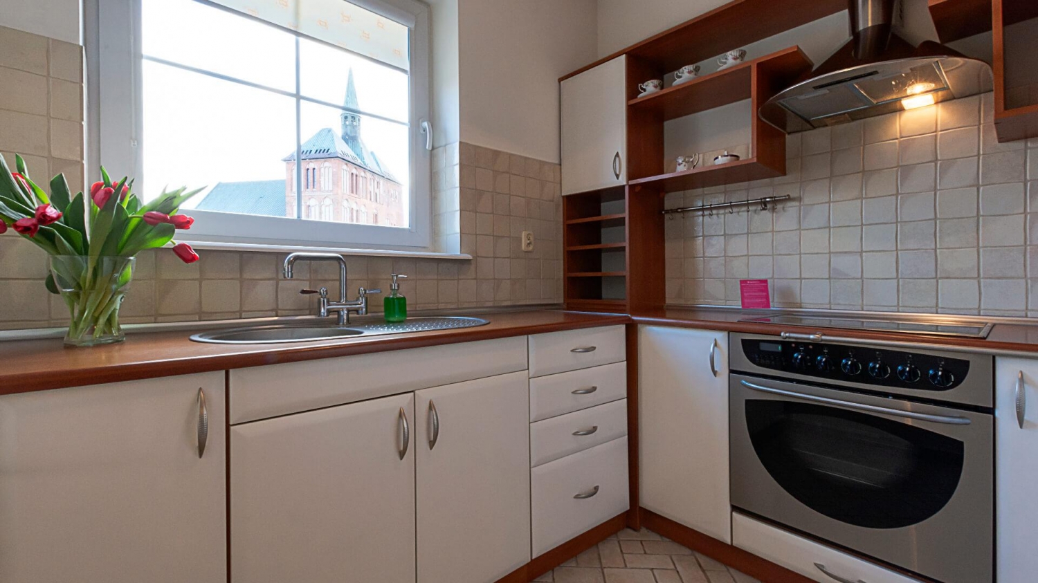 Kuchnia została dobrze wyposażona, do dyspozycji Gości jest AGD: lodówka, piekarnik, czajnik, naczynia i sztućce a także kieliszki do wina.