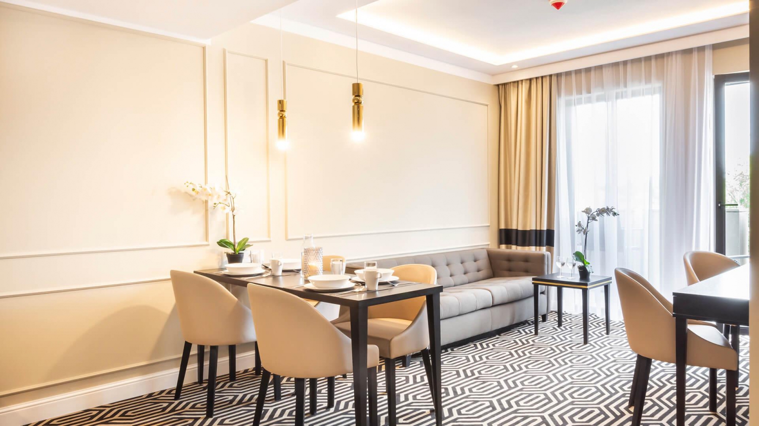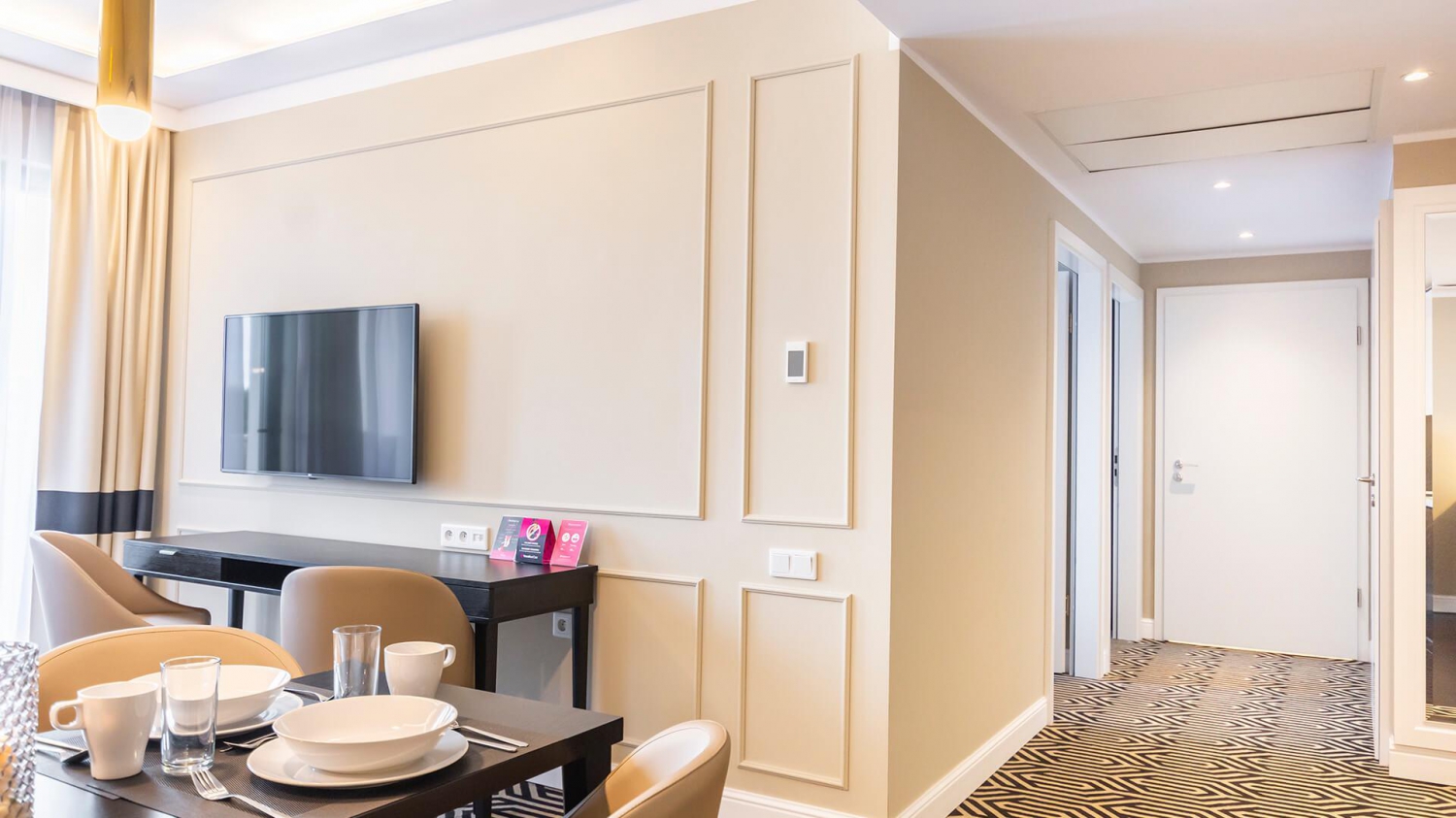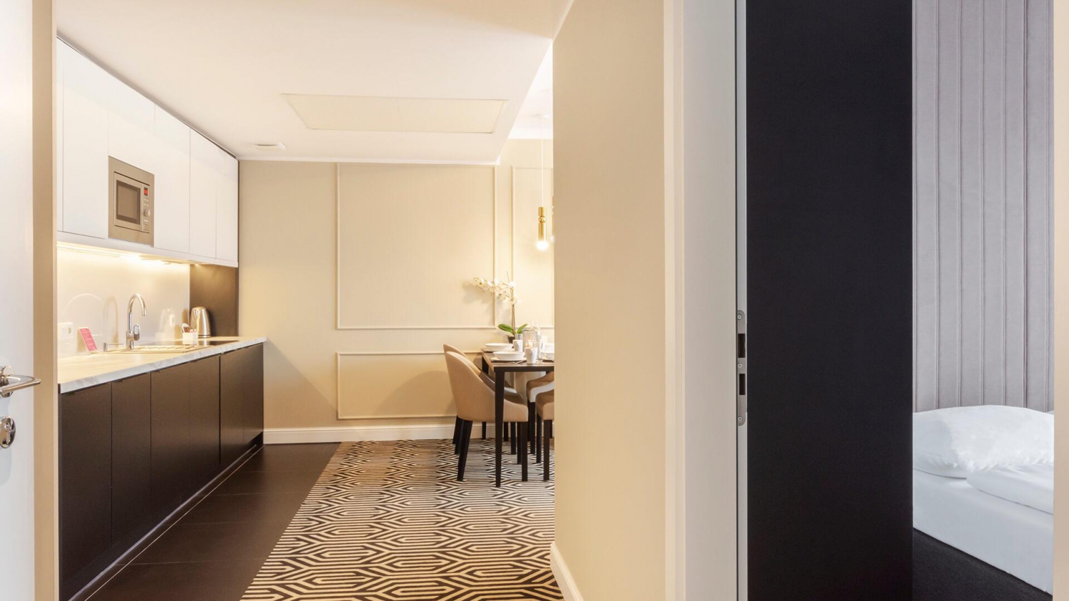 W apartamencie znajduje się w pełni wyposażony, nowoczesny i elegancki aneks kuchenny, idealny do wspólnego przygotowywania posiłków. Do dyspozycji Gości jest lodówka, zmywarka, płyta grzewcza, kuchenka mikrofalowa, ekspres do kawy, toster oraz komplet naczyń wraz z zestawem narzędzi kuchennych.