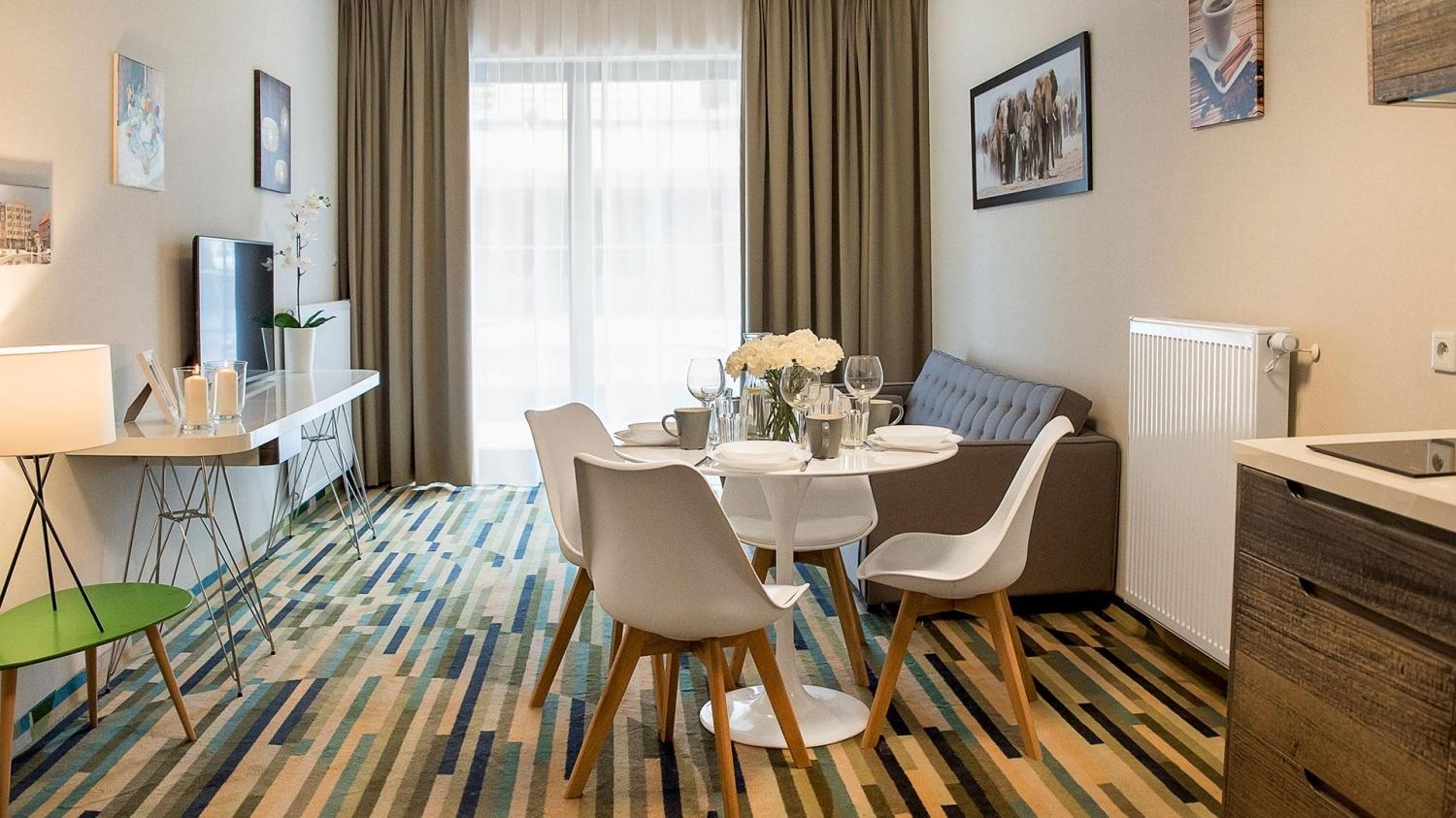 Apartament znajduje się w uzdrowiskowej części Świnoujścia, w otoczeniu zieleni Parku Zdrojowego i w pobliżu malowniczej promenady miejskiej. Jest to idealne miejsce do wypoczynku i błogiego relaksu. Piaszczysta i bezpieczna plaża oddalona jest tylko o około 50 metrów. Okolica zachęca nie tylko do plażowania, ale również – dzięki świetnej infrastrukturze – do wycieczek pieszych i rowerowych. Chcąc zapewnić sobie maksymalną wygodę podczas urlopu, Goście VacationClub™ mogą również wykupić opcję śniadań w pobliskiej restauracji bądź pełny pakiet żywieniowy w sąsiednim pięciogwiazdkowym hotelu Radisson Blu Resort, Świnoujście.