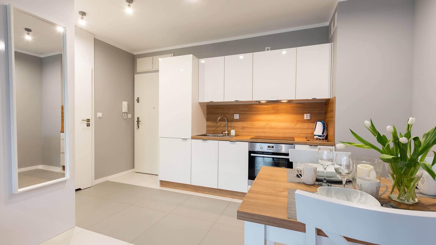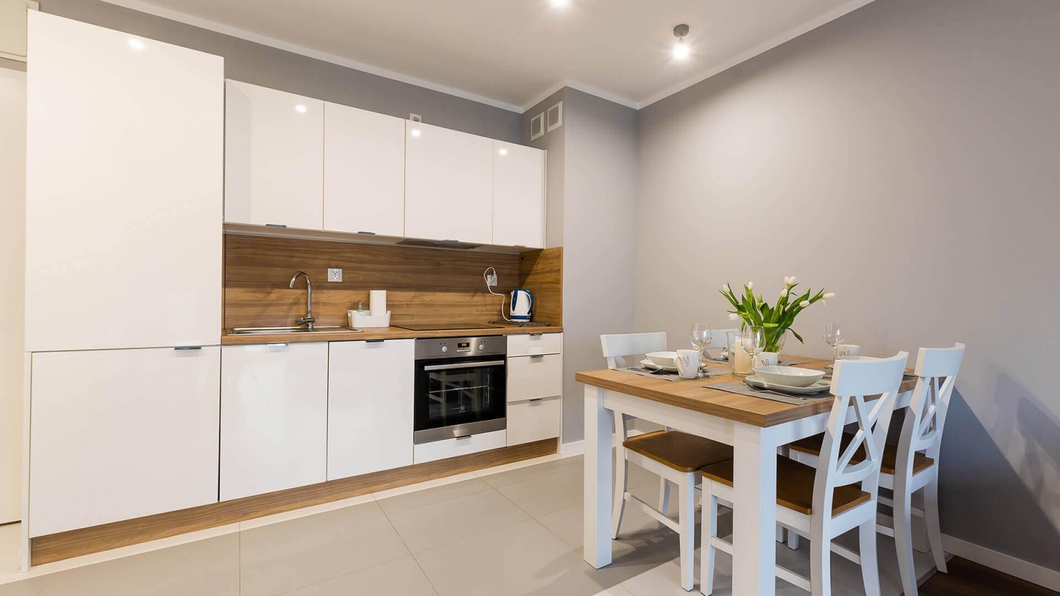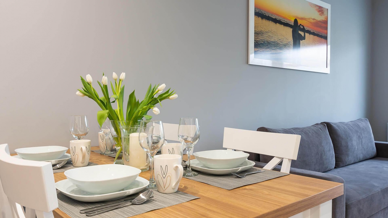 W apartamencie znajduje się aneks kuchenny. Do dyspozycji naszych Gości udostępniamy sprzęt AGD m.in. lodówkę, płytę kuchenną , piekarnik, zmywarkę oraz komplet naczyń, sztućce, akcesoria kuchenne, szklanki i kieliszki do wina.