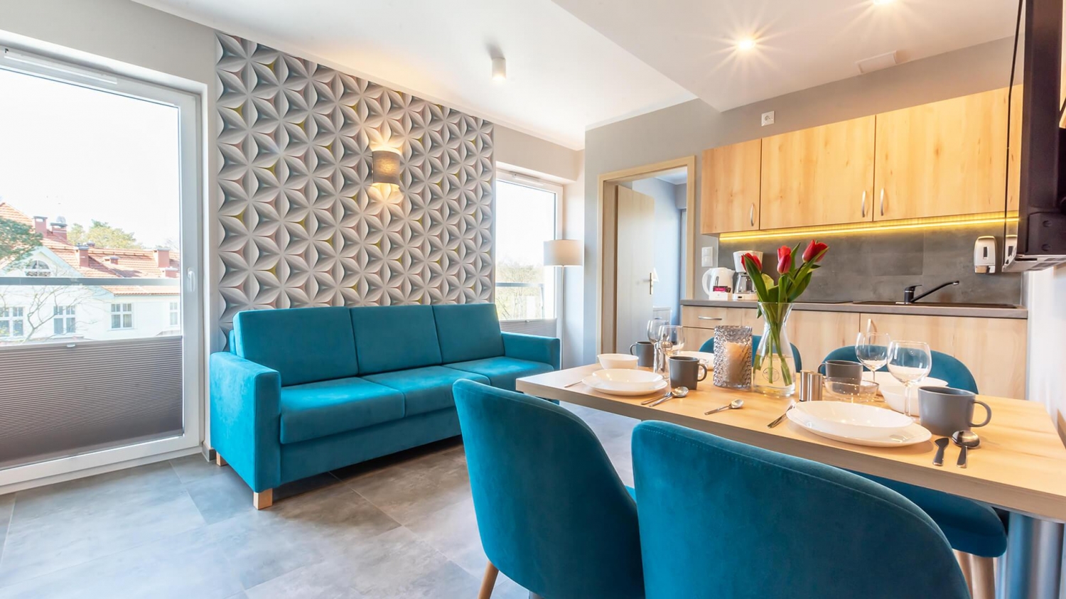 Apartament znajduje się w uzdrowiskowej części Świnoujścia, usytuowany pomiędzy uliczkami do spacerowania i parkiem, a świnoujską promenadą, pełną atrakcji dla dzieci i dorosłych. Jest to idealne miejsce do wypoczynku i błogiego relaksu. Piaszczysta i bezpieczna plaża jest oddalona o 900 metrów od apartamentu. Okolica zachęca nie tylko do plażowania, ale również – dzięki świetnej infrastrukturze – do wycieczek pieszych i rowerowych. Chcąc zapewnić sobie maksymalną wygodę podczas pobytu, Goście VacationClub™ mogą również wykupić opcję śniadań lub pełny pakiet żywieniowy w oddalonym zaledwie o 10 minut spacerem 5-gwiazdkowym hotelu Radisson Blu Resort, Świnoujście.