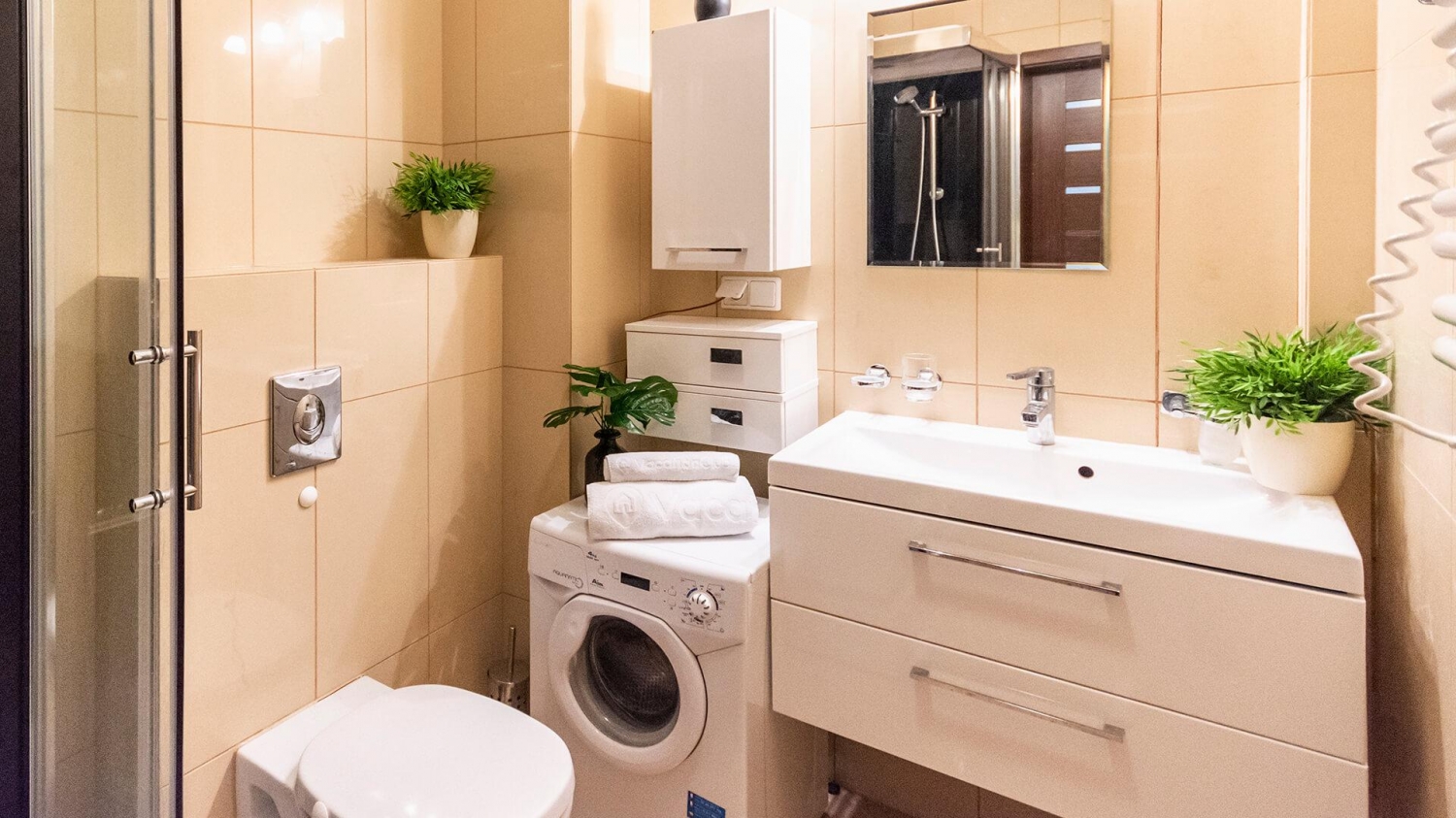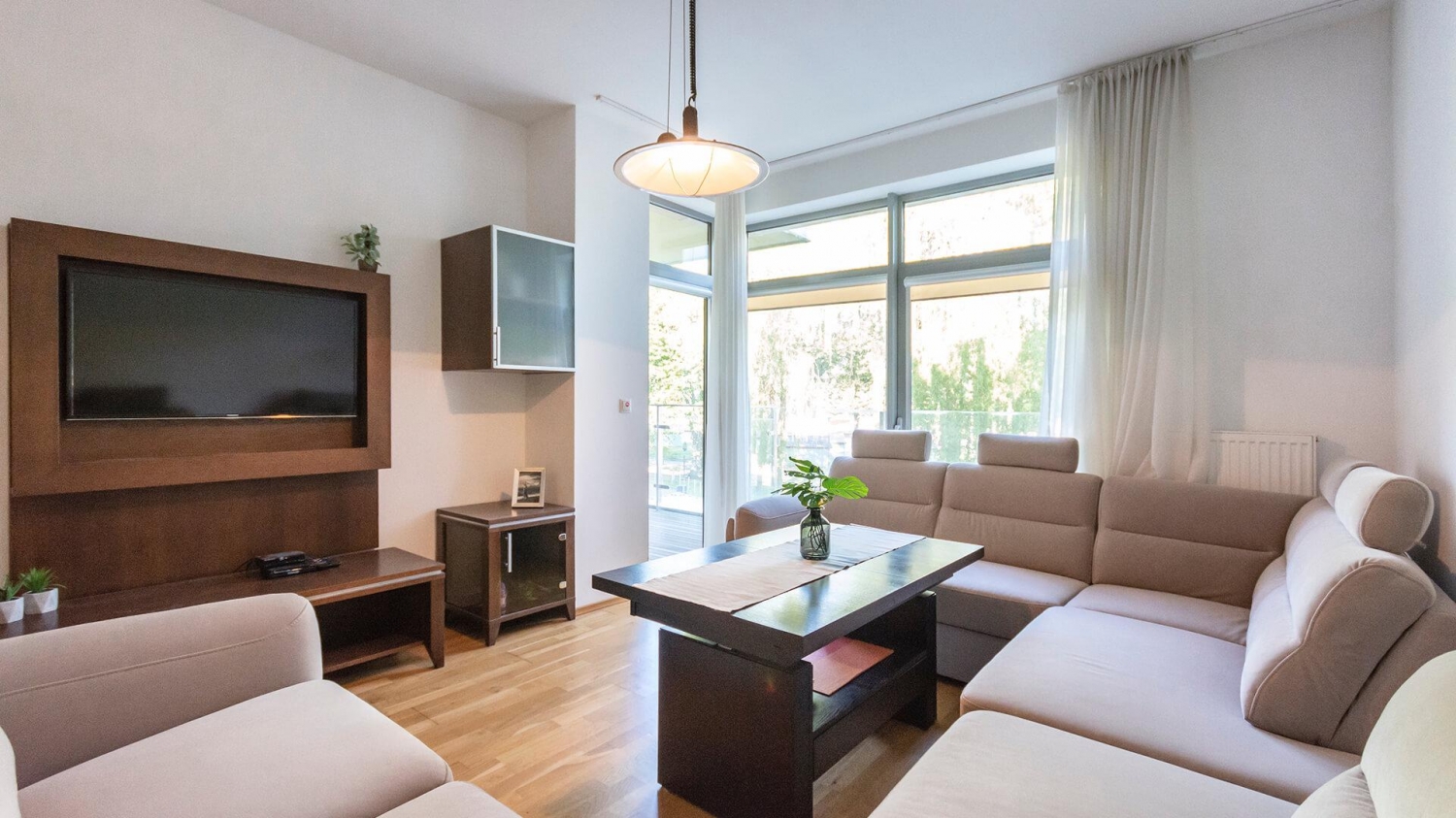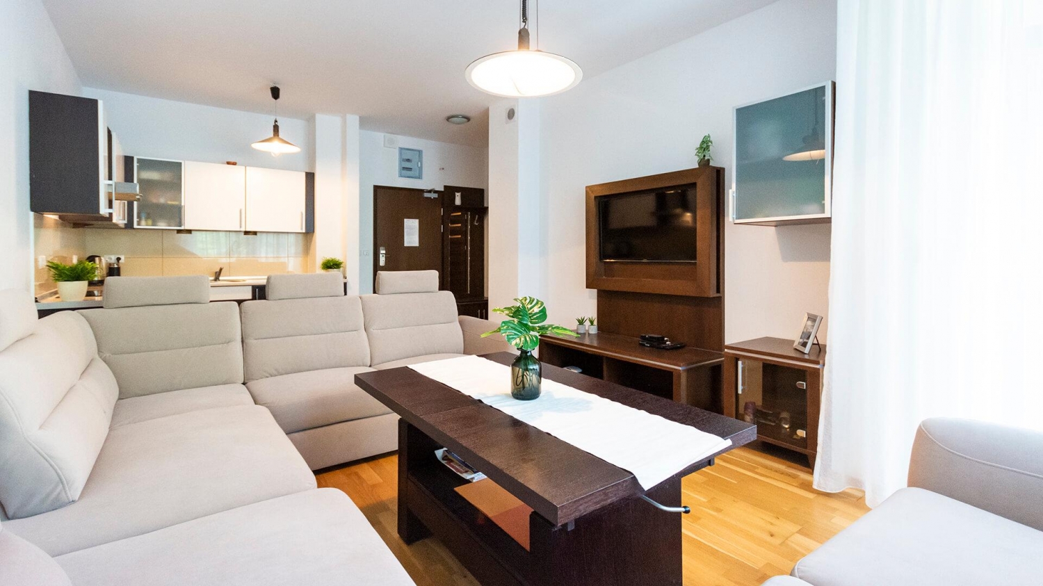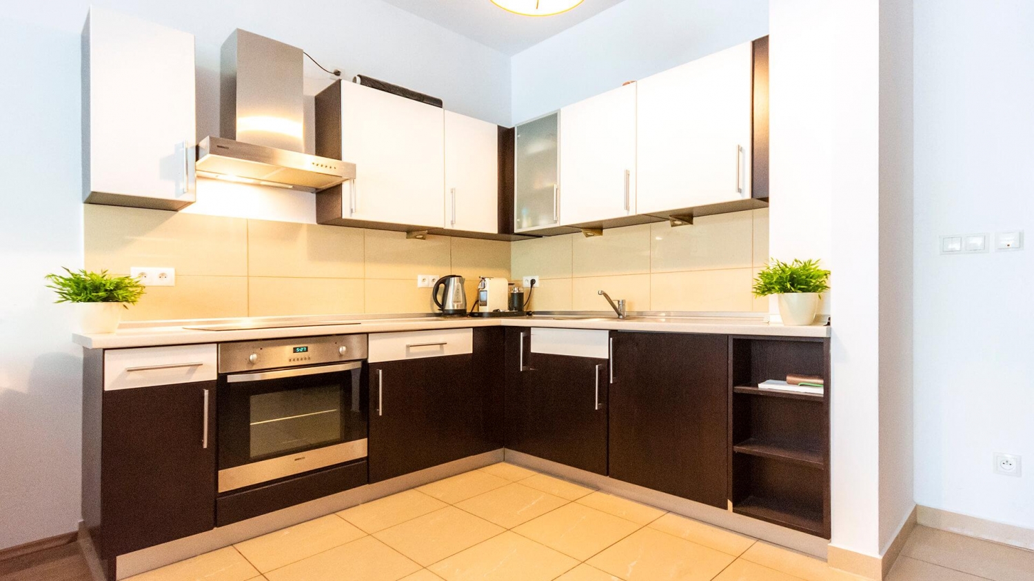W apartamencie znajduje się także doskonale wyposażony aneks kuchenny przystosowany do zaspokajania codziennych potrzeb. Do dyspozycji naszych Gości udostępniamy nowoczesny sprzęt AGD m.in. lodówkę, kuchenkę z okapem, piekarnik oraz komplet naczyń, sztućce, akcesoria kuchenne, szklanki i kieliszki do wina. Wszystko, co potrzebne by samodzielnie przygotować posiłki i cieszyć się wspólnymi chwilami z bliskimi