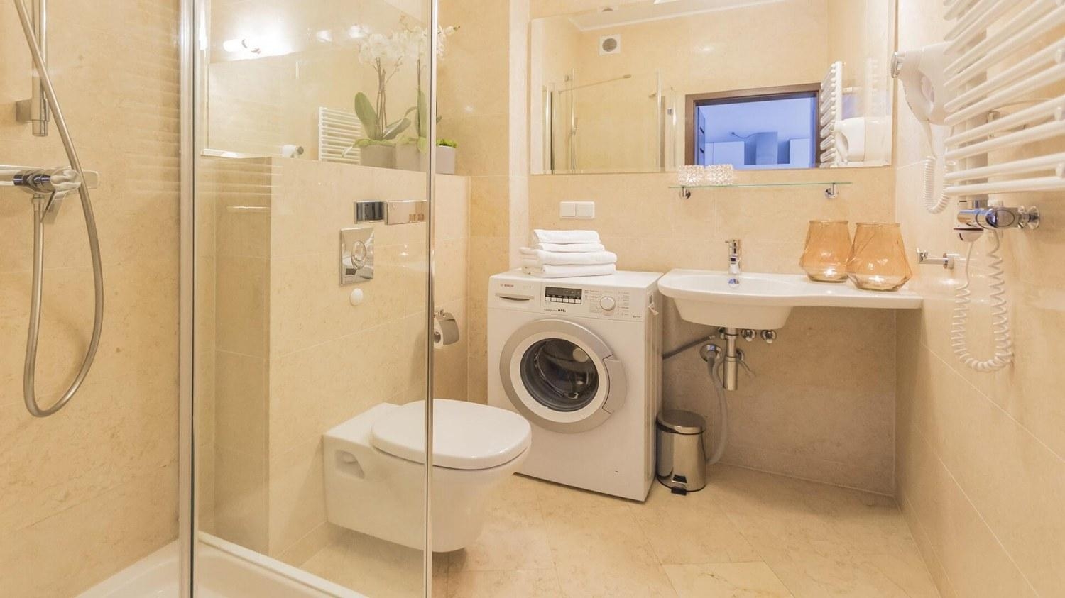 Obecność pralki i zmywarki okazała się miłym zaskoczeniem. Przy pobycie z rodziną to wielki plus. Bardzo duże łóżko w sypialni pozwoliło na wygodne spanie rodziców z małym dzieckiem. Miejsce w garażu /bez dodatkowej opłaty/ to też zaleta apartamentu.