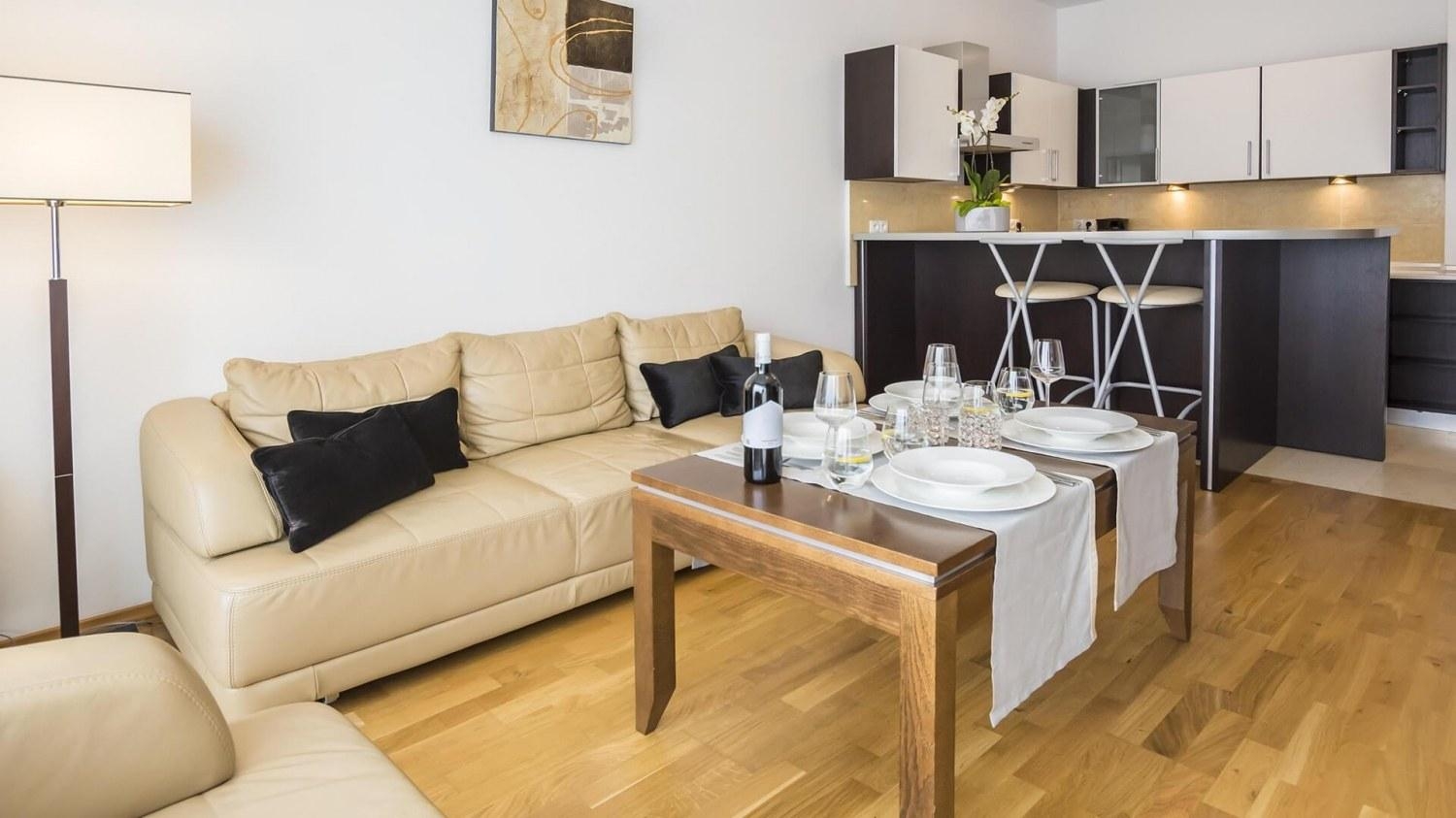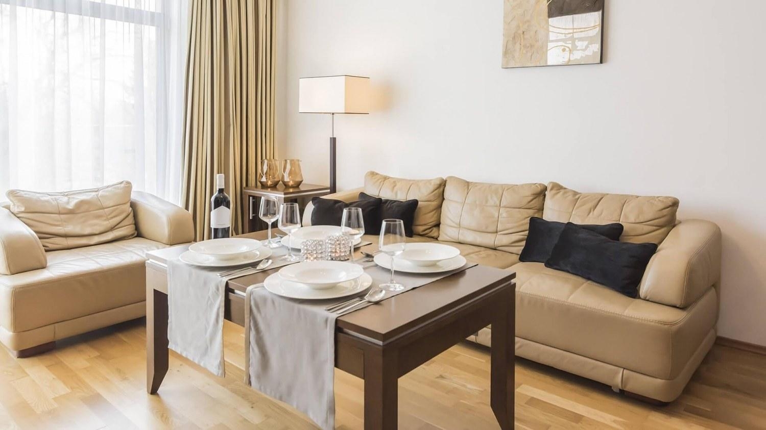 Apartament naprawdę zadbany i dobrze wyposażony. Czysty o schludny. Meble ładne i wykonane z dobrych materiałów, choć osobiście nie przepadam za skórą na kanapie. Zmywarka, pralka, suszarka, garnki i naczynia. Niczego prócz mopa nie brakowało;-)