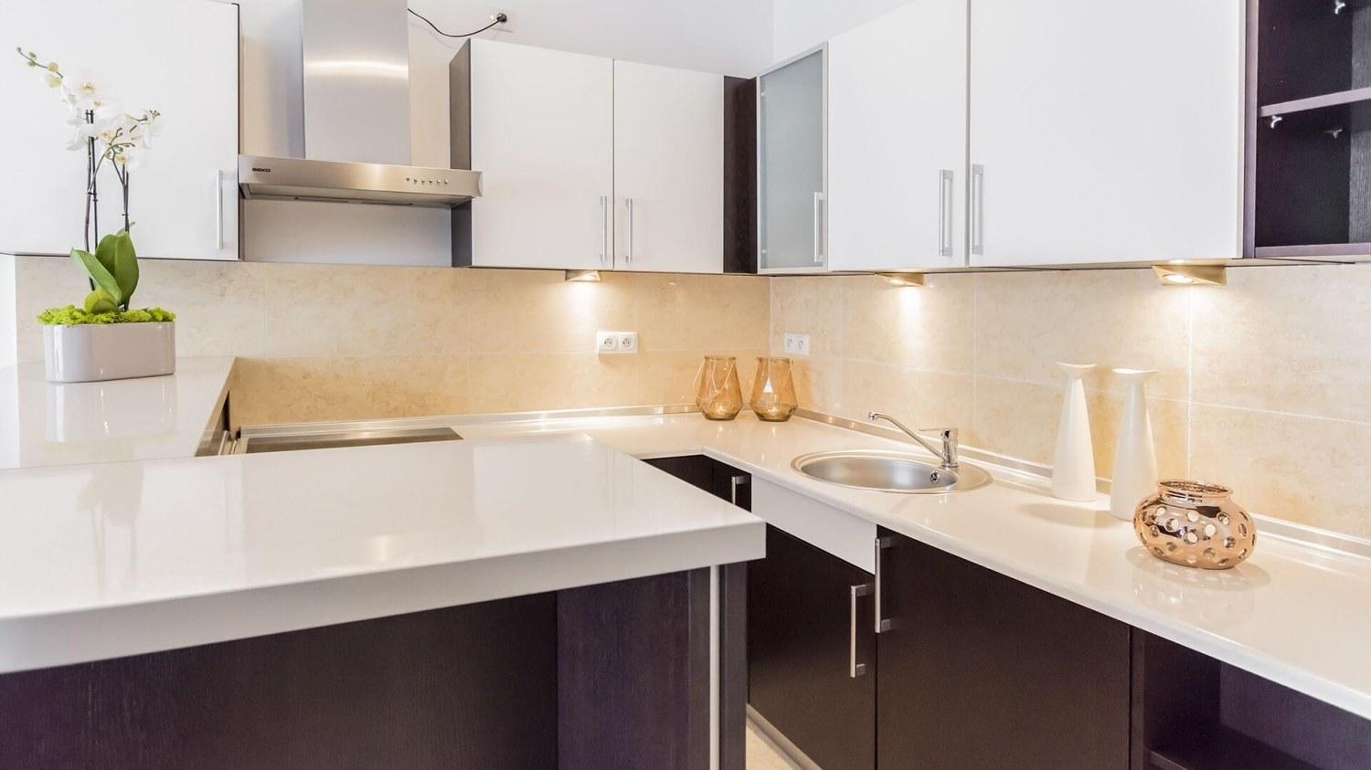 W apartamencie znajduje się także doskonale wyposażony aneks kuchenny przystosowany do zaspokajania codziennych potrzeb. Do dyspozycji naszych Gości udostępniamy nowoczesny sprzęt AGD m.in. lodówkę, kuchenkę z okapem, zmywarkę oraz komplet naczyń, sztućce, akcesoria kuchenne, szklanki i kieliszki do wina. Wszystko, co potrzebne by samodzielnie przygotować posiłki i cieszyć się wspólnymi chwilami z bliskimi.