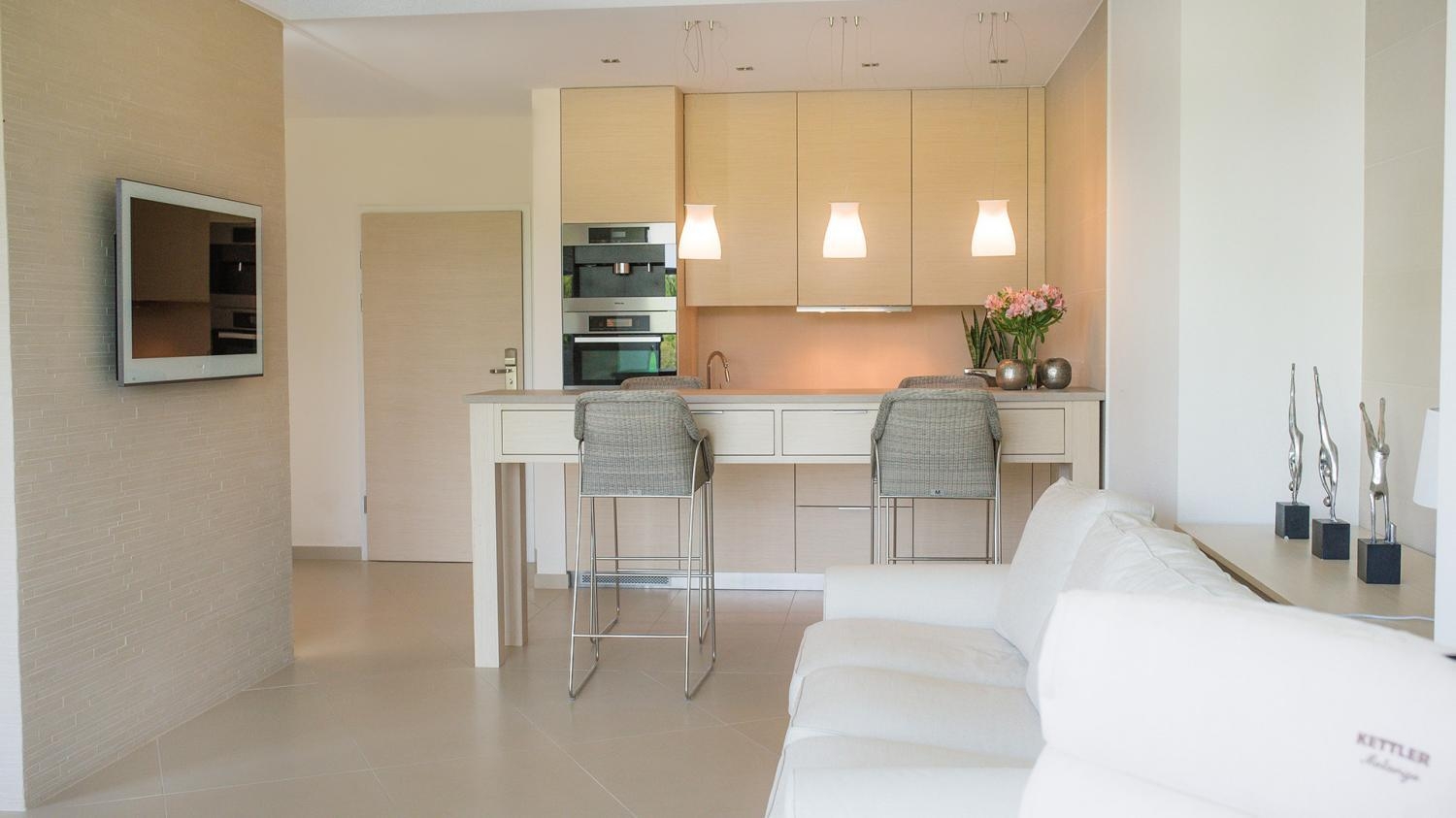 W apartamencie znajduje się bogato wyposażony aneks kuchenny przystosowany do zaspokajania codziennych potrzeb kulinarnych. Do dyspozycji naszych Gości udostępniamy nowoczesny sprzęt AGD, m.in.: lodówkę, kuchenkę indukcyjną, piekarnik i ekspres do kawy. W skład aneksu wchodzi również barek oraz strefa jadalni mogąca wygodnie pomieścić 4 osoby.
