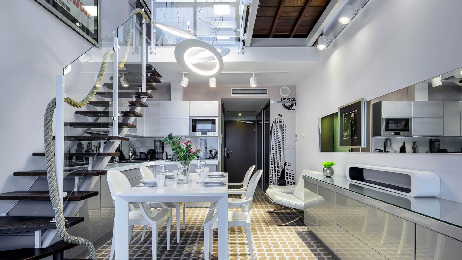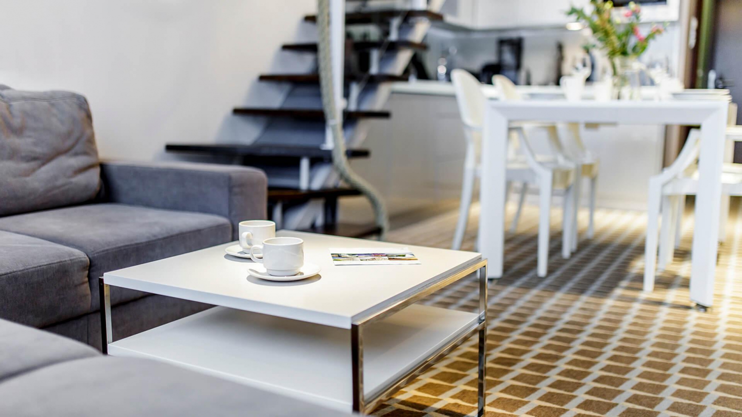 Apartament składa się przestronnego salonu salonu z sofą narożną z funkcją spania, aneksu kuchennego oraz antresoli, na której urządzona jest sypialnia z podwójnym łóżkiem. Apartament posiada również balkon z ekspozycją wschodnią z widokiem na Morze Bałtyckie. Do dyspozycji Gości jest bezpłatny, bezprzewodowy Internet. Do apartamentu przynależy bezpłatne miejsce parkingowe w garażu podziemnym.