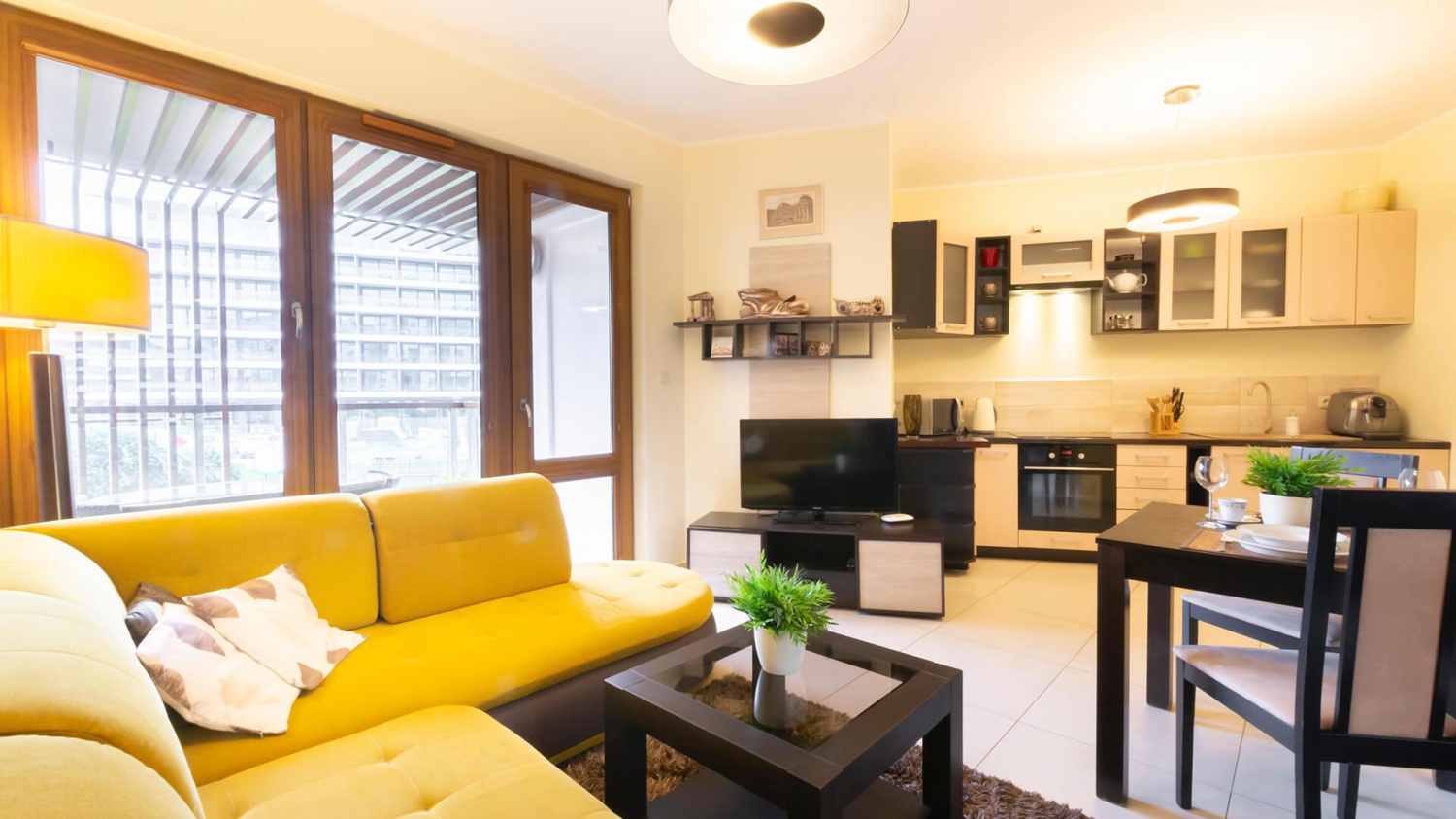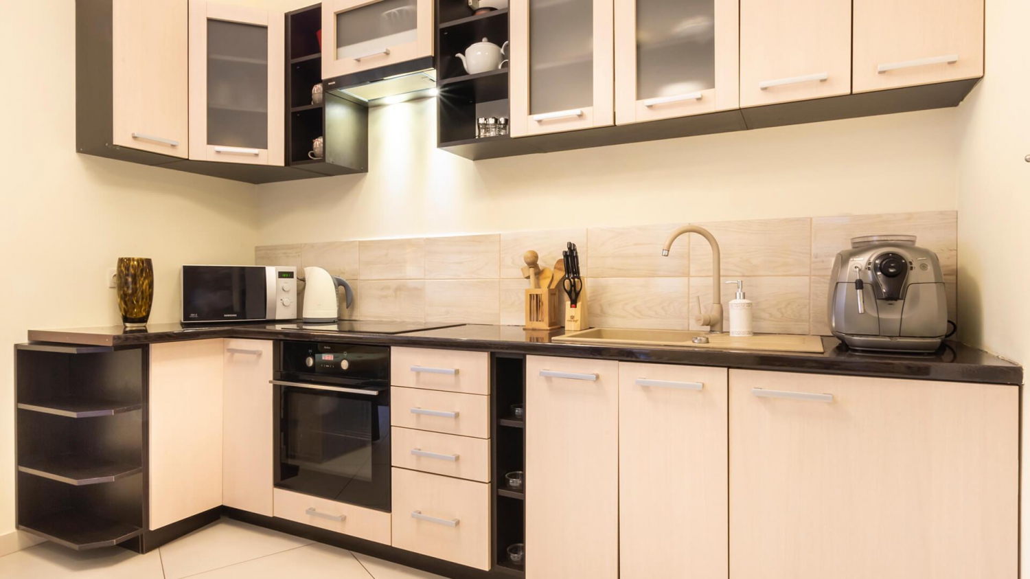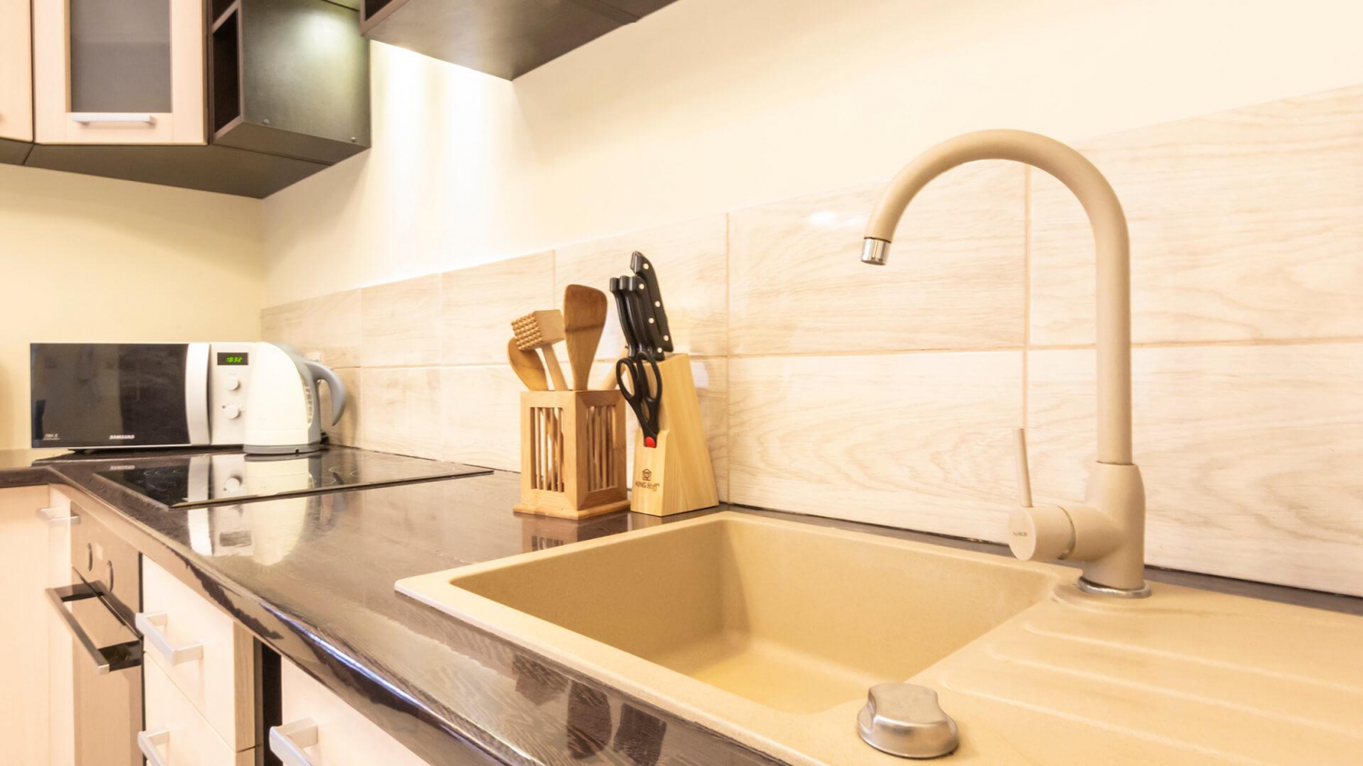 W apartamencie znajduje się bogato wyposażony aneks kuchenny, przystosowany do przygotowywania codziennych posiłków. Do dyspozycji naszych Gości jest nowoczesny sprzęt AGD m.in. czajnik elektryczny, ekspres do kawy, lodówka, kuchenka oraz kuchenka mikrofalowa, a także komplet naczyń, sztućce, akcesoria kuchenne i kieliszki do wina - wszystko, co potrzebne, by samodzielnie przygotowywać posiłki i cieszyć się wspólnymi chwilami z bliskimi. W słoneczne dni oraz podczas ciepłych wieczorów wspólne chwile będą smakować jeszcze lepiej na przestronnym tarasie, gdzie do dyspozycji Gości jest stół i krzesła.