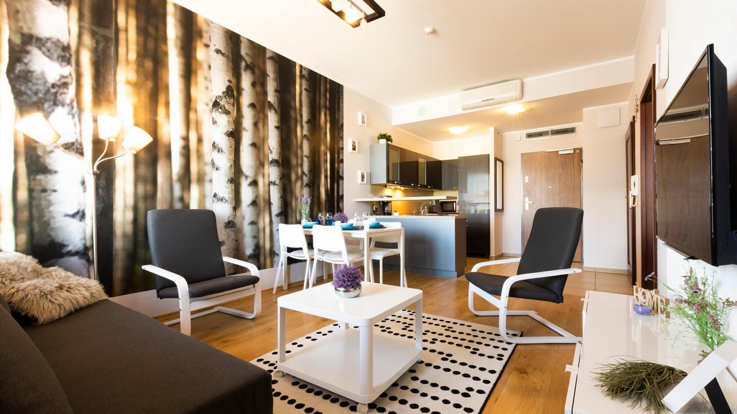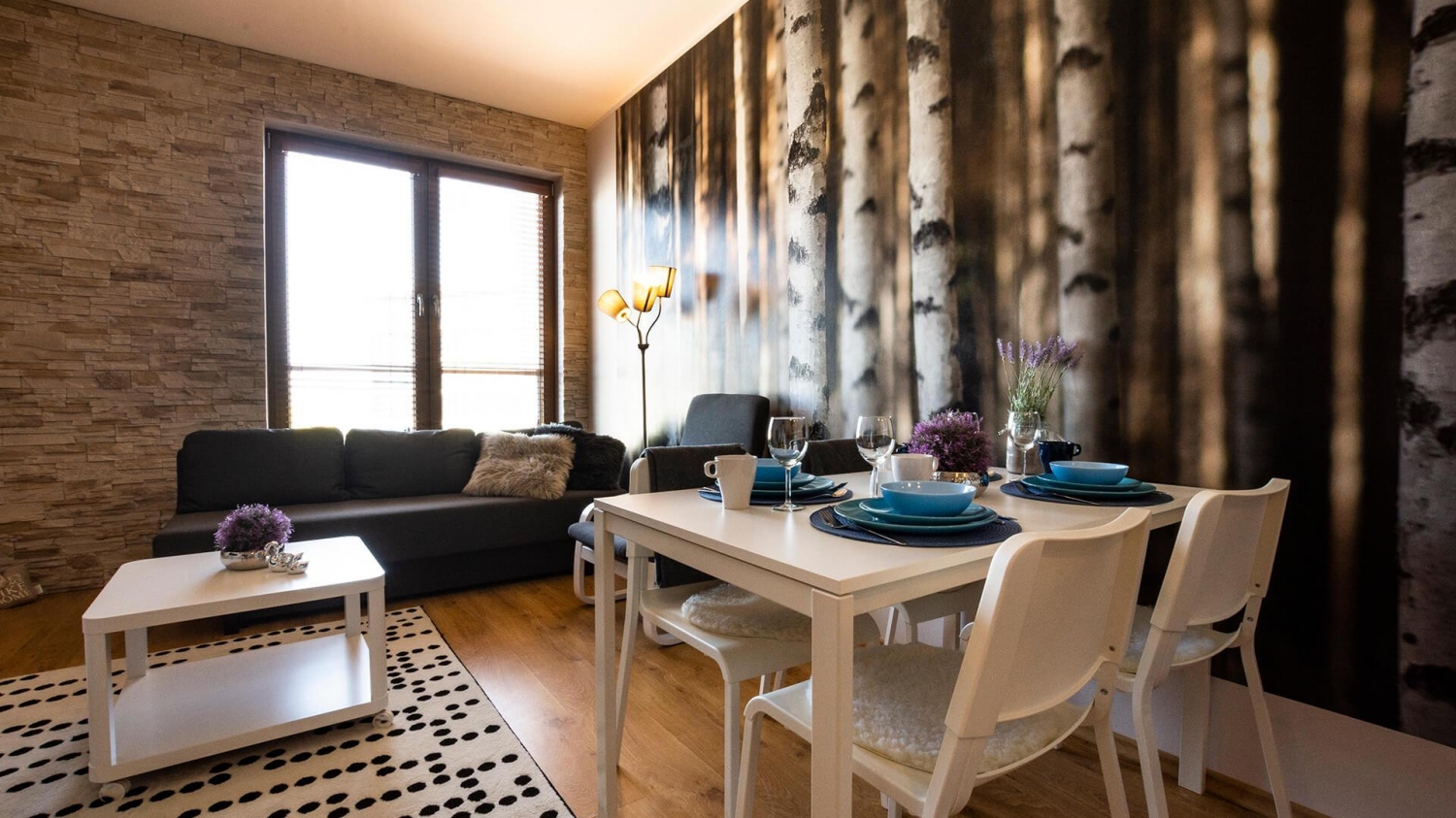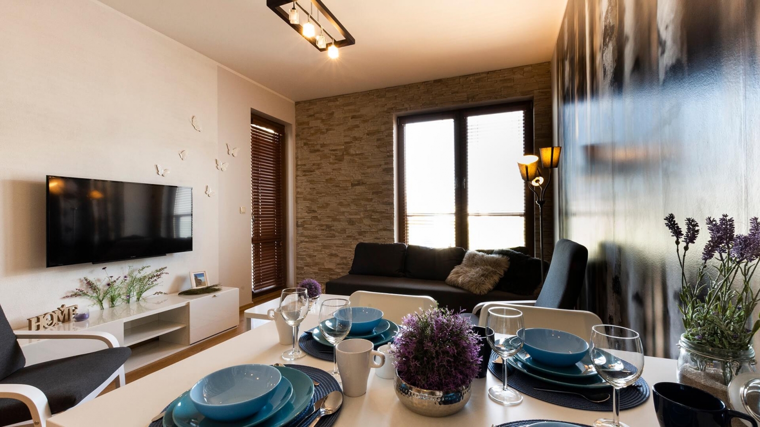W apartamencie znajduje się doskonale wyposażony aneks kuchenny przystosowany do zaspokajania codziennych potrzeb. Do dyspozycji Gości są sprzęty AGD m.in. lodówka, płyta indukcyjna z okapem, zmywarka, piekarnik, ekspres do kawy, toster oraz komplet naczyń, sztućce, akcesoria kuchenne, szklanki i kieliszki do wina. Wszystko, co potrzebne by samodzielnie przygotować posiłki i cieszyć się wspólnymi chwilami z bliskimi.