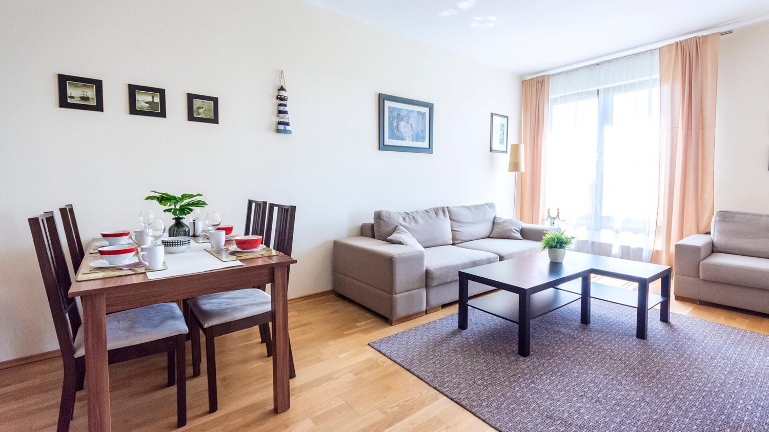 Apartament znajduje się we wschodniej części Kołobrzegu, w otoczeniu zieleni Parku Nadmorskiego oraz Ekoparku, wzdłuż którego rozciąga się ścieżka rowerowa z pięknymi nadmorskimi widokami. W apartamentowcu znajduje się kameralna siłownia oraz świetlica, zaś na zewnątrz plac zabaw dla dzieci. Goście VacationClub™ otrzymują bezpłatny dostęp do strefy SPA w oddalonym o 30 metrów Marine Hotel ★★★★★ & Ultra Marine. Tutaj mieści się również popularny i goszczący najlepszych DJ-ów klub muzyczny MarinGO! oraz panoramiczna kawiarnia Marni Café z widokiem na morze. Piaszczysta i bezpieczna plaża oddalona jest o niecałe 60 metrów, a okolica zachęca nie tylko do plażowania, ale również – dzięki świetnej infrastrukturze – do wycieczek pieszych i rowerowych. Dogodna lokalizacja budynku zapewnia dobry dojazd zarówno do dworca kolejowego, jak i autobusowego.