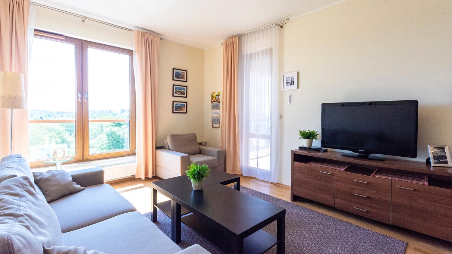 VacationClub™ – Olympic Park Apartament B411 mieści się na 4. piętrze apartamentowca, który położony jest tuż przy promenadzie nadmorskiej w otoczeniu Ekoparku oraz zaledwie 60 m od morza. Ten bardzo przytulny apartament jest w pełni umeblowany i bogato wyposażony. Zaprojektowany według najnowszych standardów pozwala Gościom poczuć się wyjątkowo. Apartament składa się z komfortowej sypialni z dużym łóżkiem małżeńskim, przestronnego salonu z rozkładaną sofą, łazienki z kabiną prysznicową oraz aneksu kuchennego. Goście otrzymują w ramach ceny również prywatne miejsce postojowe w garażu podziemnym. Telewizja posiada bogatą ofertę kanałów w języku niemieckim.