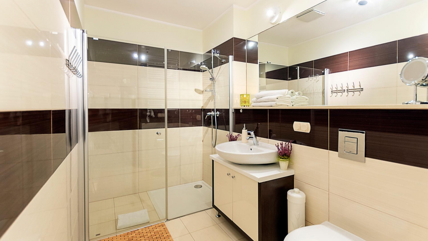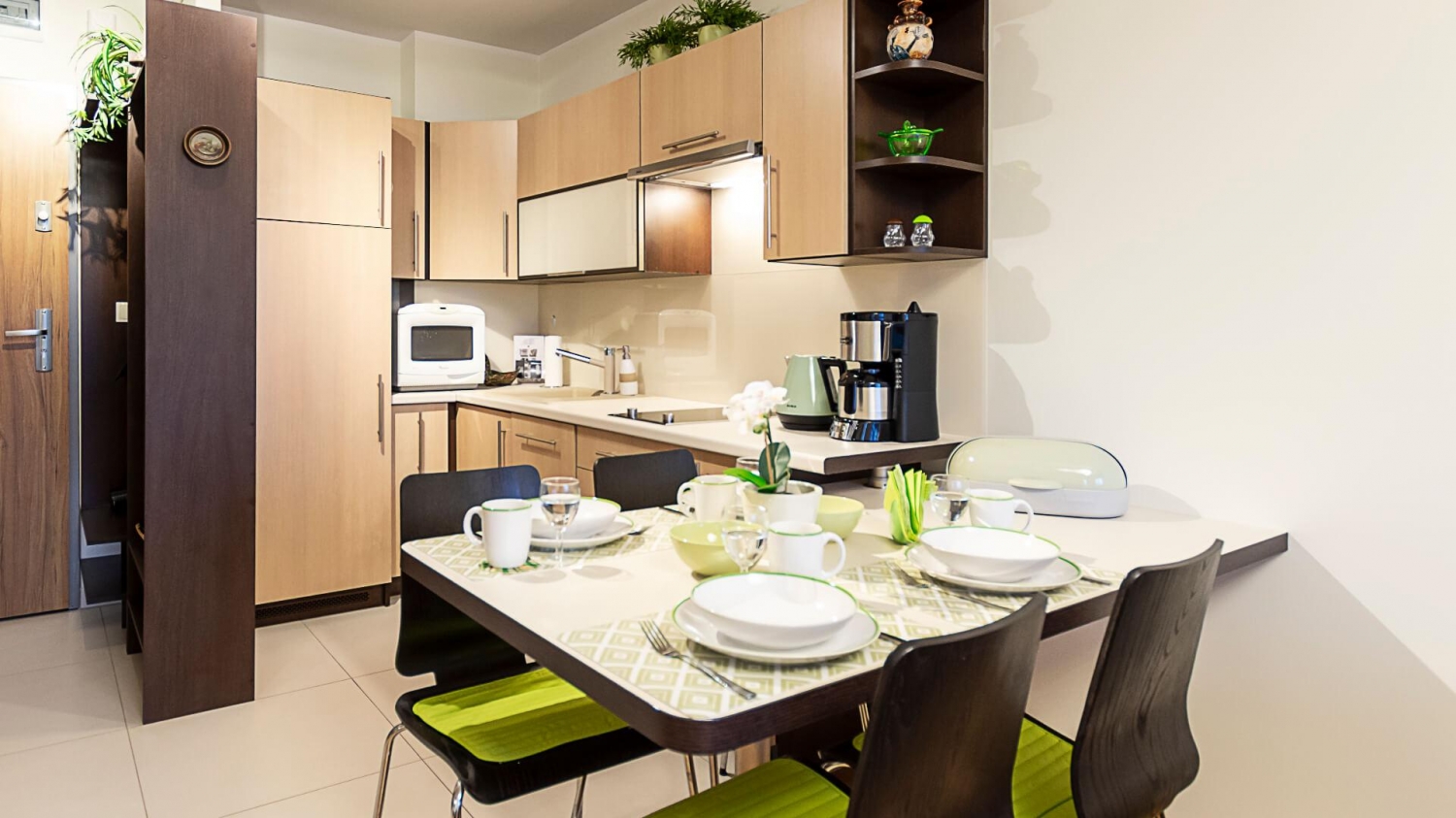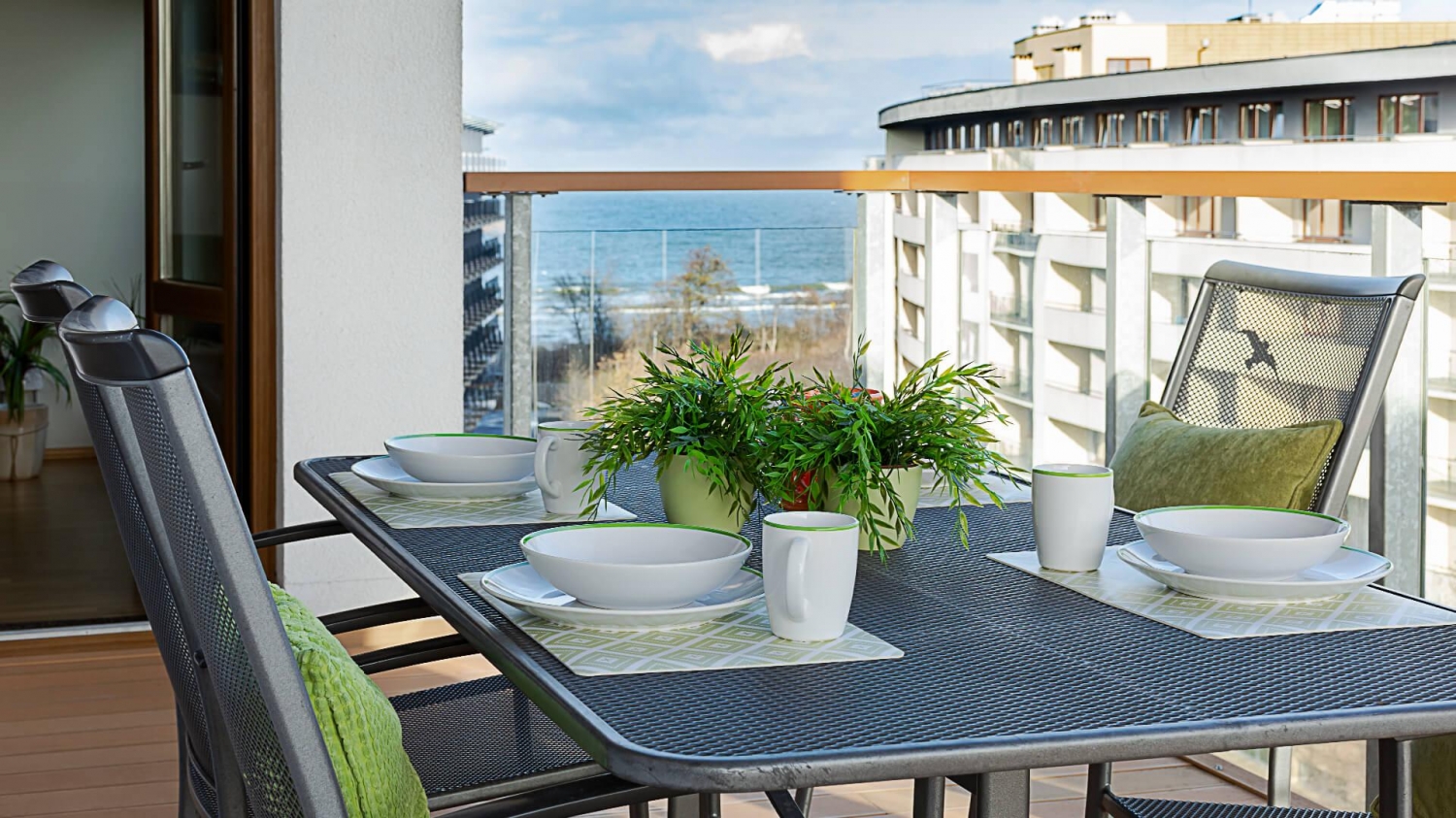 W apartamencie znajduje się bogato wyposażony aneks kuchenny, przystosowany do zaspokajania codziennych potrzeb. Do dyspozycji naszych Gości udostępniamy nowoczesny sprzęt AGD m.in. czajnik elektryczny, ekspres do kawy, lodówkę, kuchenkę, zmywarkę, toster oraz kuchenkę mikrofalową, a także komplet naczyń, garnki, sztućce, akcesoria kuchenne, szklanki i kieliszki do wina - wszystko, co potrzebne, by samodzielnie przygotować posiłki i cieszyć się wspólnymi chwilami z bliskimi. W słoneczne dni oraz podczas ciepłych wieczorów wspólne chwile będą smakować lepiej na przestronnym tarasie, gdzie do dyspozycji Gości jest stół i krzesła.