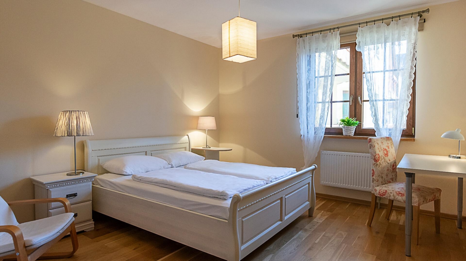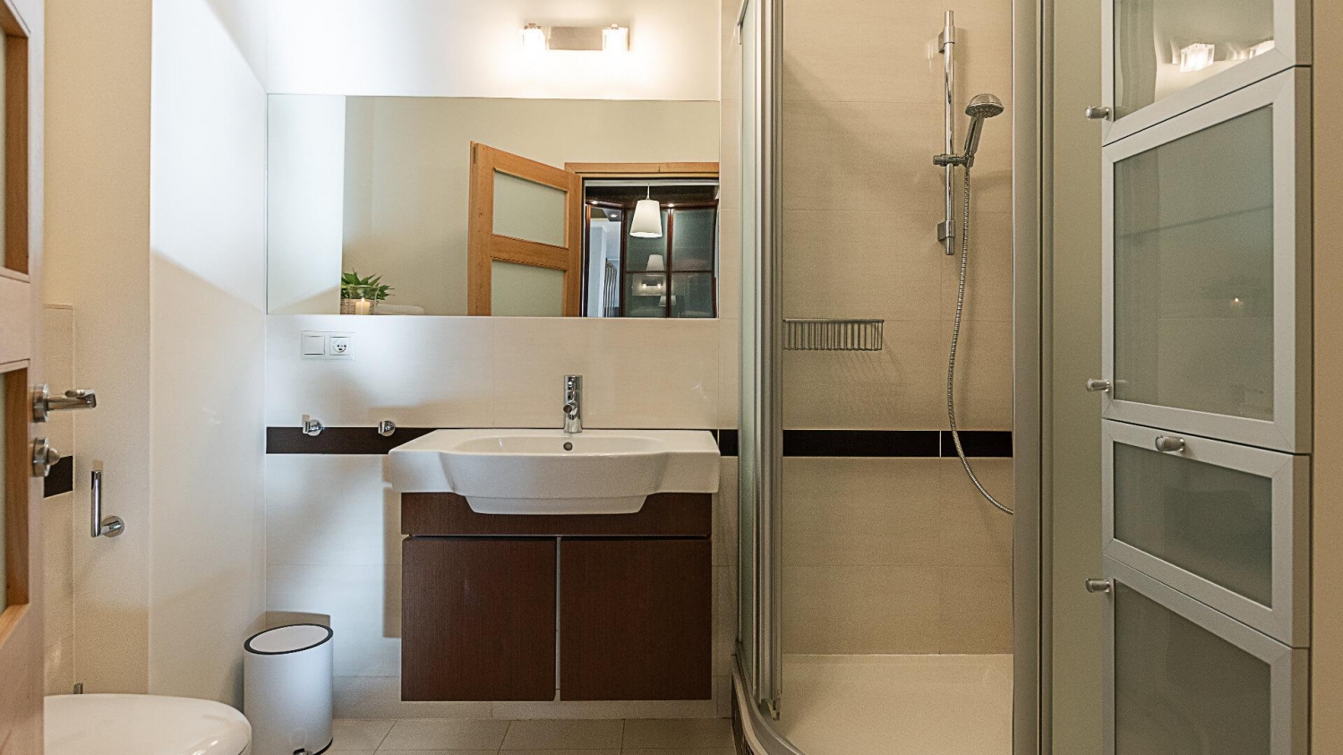 Do dyspozycji naszych Gości jest nowoczesny aneks kuchenny z lodówką, kuchenką mikrofalową, tosterem, ekspresem do kawy oraz kompletem naczyń i akcesoriami kuchennymi. Wszystko, co niezbędne, aby samodzielnie przygotować posiłki i cieszyć się wspólnymi chwilami w gronie rodziny lub znajomych.