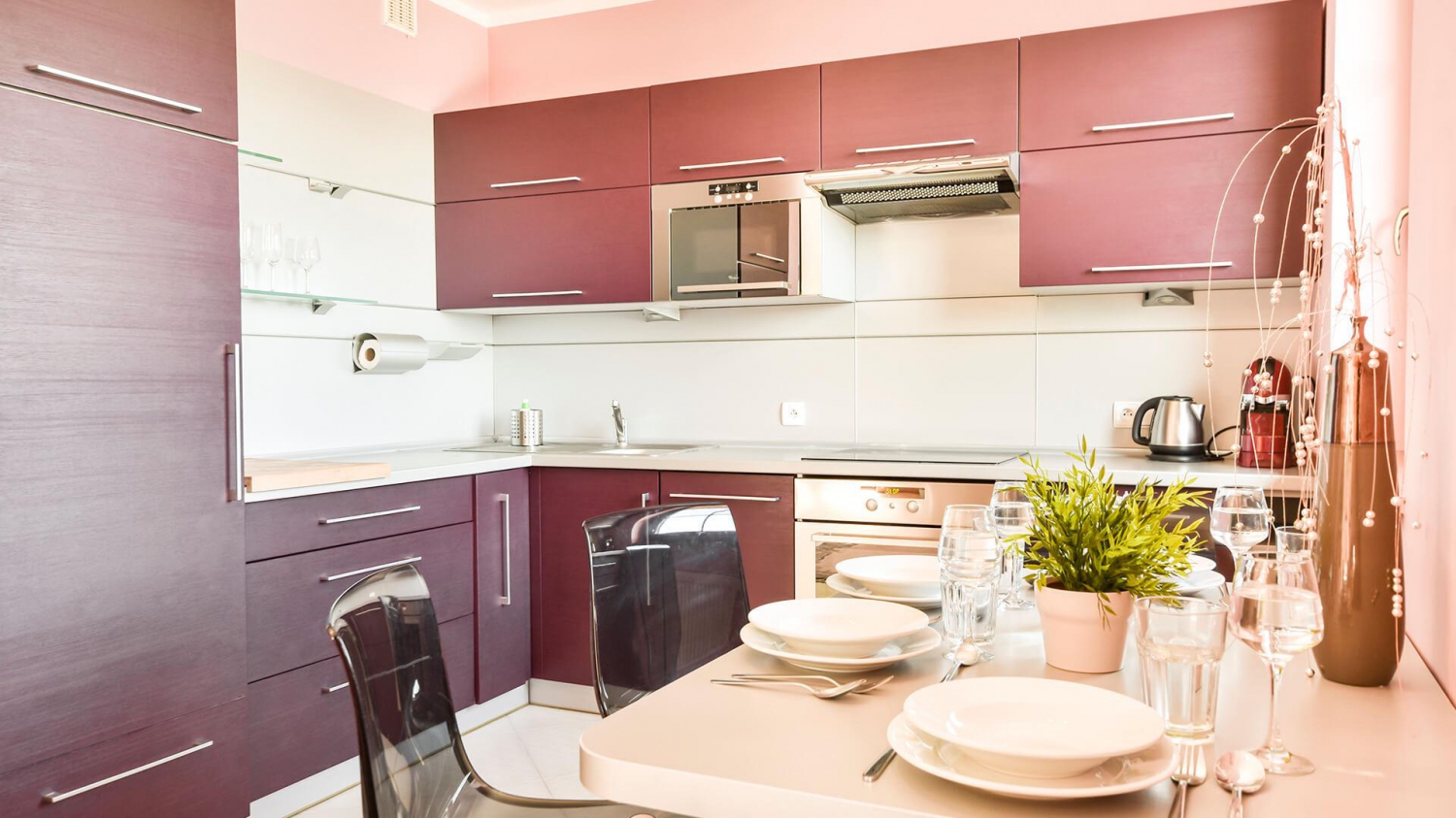 Do dyspozycji naszych Gości jest nowoczesny aneks kuchenny z lodówką, zmywarką, płytą grzewczą oraz kompletem naczyń i akcesoriami kuchennymi. Znaleźć tu można wszystko, co niezbędne, by samodzielnie przygotowywać posiłki i cieszyć się wspólnymi chwilami w gronie rodziny lub znajomych.