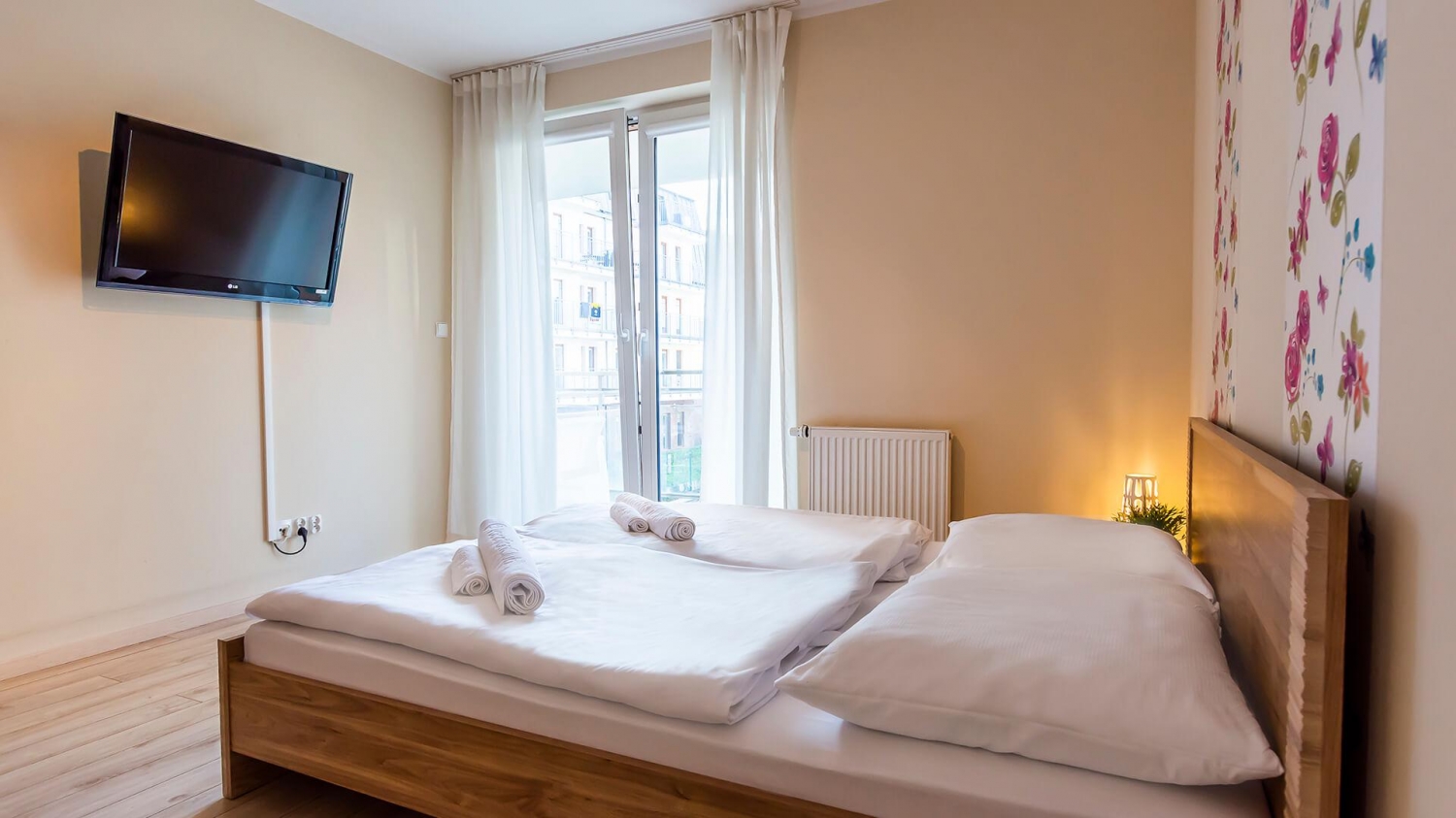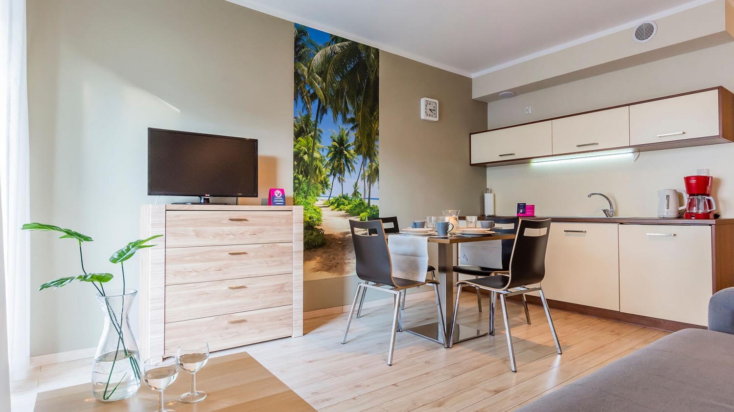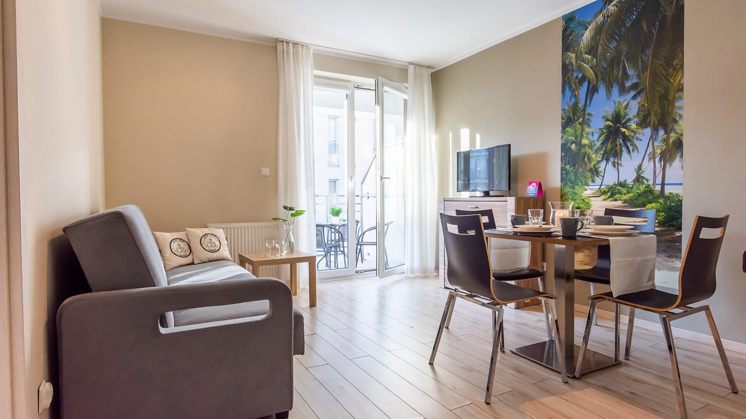 VacationClub™ – Pegaz Apartament 15 mieści się na 1. piętrze nowoczesnego budynku położonego w najnowszej nadmorskiej dzielnicy apartamentowej Świnoujścia, 2 minuty pieszo spacerem do słynnej świnoujskiej Nowej Promenady i 2 kolejne, by znaleźć się na najpiękniejszej morskiej plaży Polski. Apartament jest w pełni wyposażony. Wyjątkowy klimat nadają wnętrzu plażowo-morskie elementy wystroju, a dużo słońca zapewnia zachodnia ekspozycja i dwa duże okna balkonowe. Apartament składa się z przedpokoju, salonu z wygodną rozkładaną sofą, jasnej sypialni z szerokim łóżkiem małżeńskim, przestronnej łazienki z kabiną prysznicową oraz aneksu kuchennego ze stołem i krzesłami. Dodatkową przestrzeń i dużo światła zapewniają dwa osobne balkony: w sypialni i w salonie. Do dyspozycji Gości jest telewizja oraz bezpłatny bezprzewodowy dostęp do Internetu. By nie rozdzielać rodziny i przyjaciół, istnieje możliwość rezerwacji trzyosobowego apartamentu piętro wyżej. Do apartamentu przynależy miejsce postojowe w garażu podziemnym numer 19.