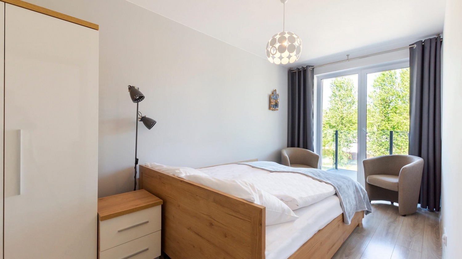 VacationClub™ Pionierów 6, Apartament 25 mieści się na drugim piętrze nowej inwestycji w Mielnie. Budynek z windą jest położony w bardzo komfortowym miejscu gwarantującym zarówno ciszę i spokój oraz bliskość dostępu do morza (300 m), jeziora Jamno i centrum Mielna. Z apartamentu roztacza się widok na panoramę Mielna z jeziorem Jamno na horyzoncie. Apartament składa się z sypialni z podwójnym łóżkiem, salonu z rozkładaną i przystosowaną do spania sofą, łazienki z kabiną prysznicową oraz aneksu kuchennego. Na miejscu do dyspozycji Gości jest pralka, zmywarka, telewizja oraz bezpłatny bezprzewodowy Internet.