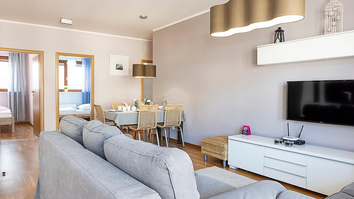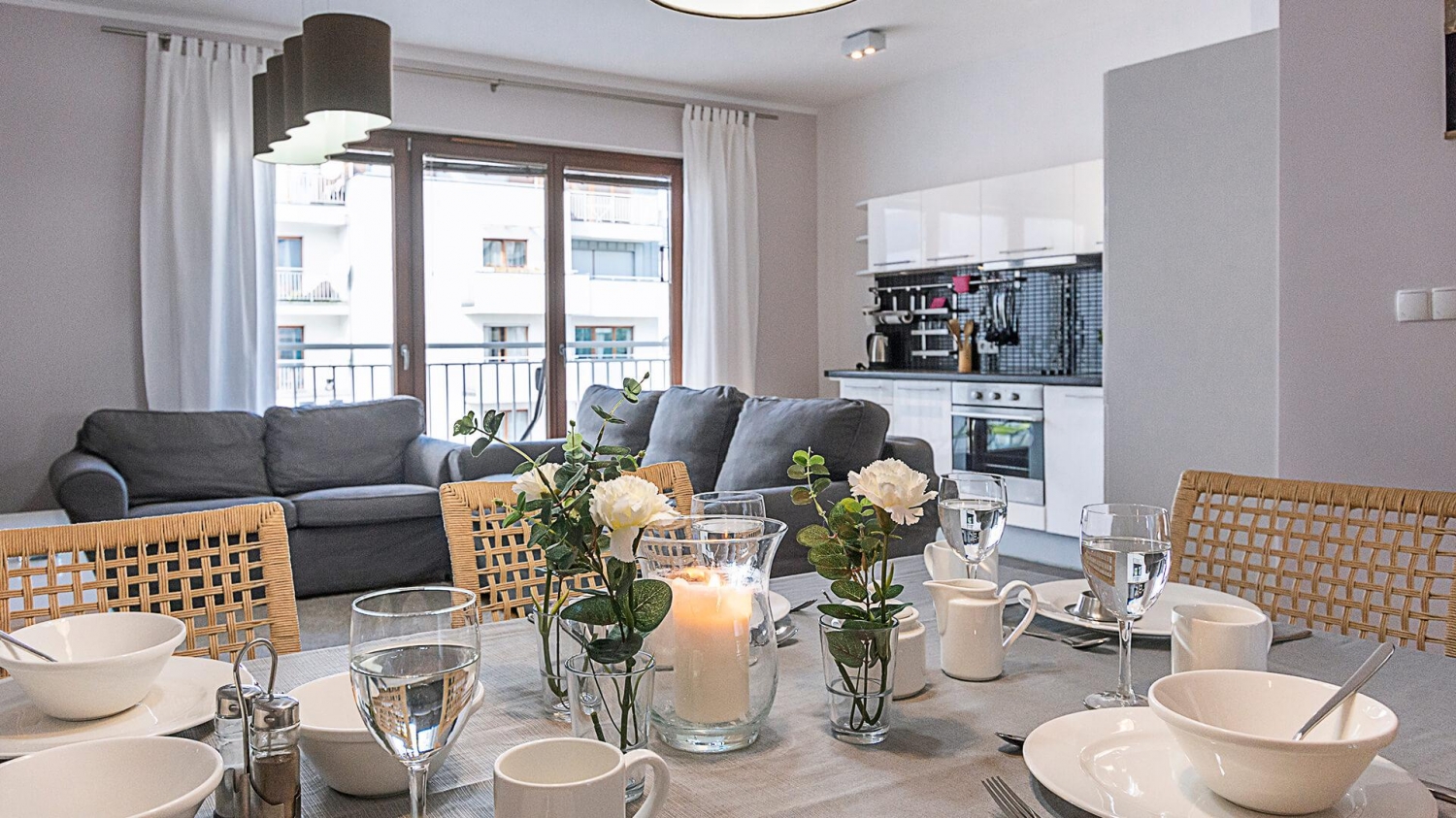W apartamencie znajduje się profesjonalnie wyposażony aneks kuchenny przygotowany do spędzania wspólnych chwil w gronie rodziny i przyjaciół. Lodówka, piekarnik, płyta, ekspres do kawy, opiekacz wraz kompletem naczyń, sztućców, akcesoriami kuchennymi, szklankami i kieliszkami umożliwiają samodzielne przygotowanie posiłków wspólnie z bliskimi.