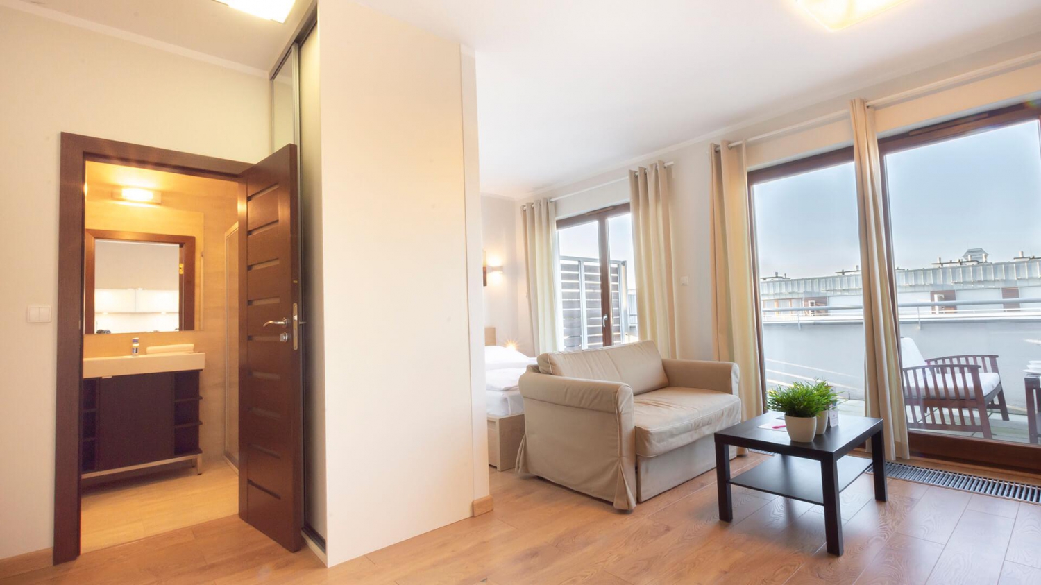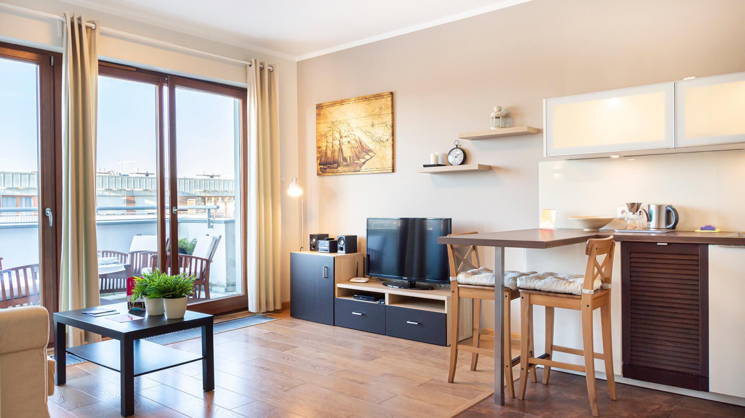 W apartamencie znajduje się profesjonalnie wyposażony aneks kuchenny przygotowany do spędzania wspólnych chwil w gronie rodziny i przyjaciół. Lodówka, piekarnik, płyta wraz kompletem naczyń, sztućców, akcesoriami kuchennymi, szklankami i kieliszkami umożliwiają samodzielne przygotowanie posiłków wspólnie z bliskimi.