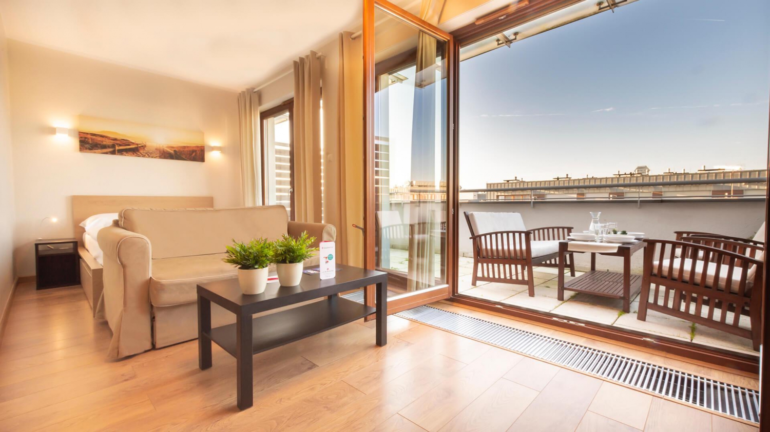 VacationClub™ – Platan 2E Apartament 19 mieści się na ostatnim, 4. piętrze nowoczesnego budynku wchodzącego w skład przyjaznego rodzinom kompleksu Platan. Dzięki panoramicznym oknom, ten przestronny apartament typu studio jest bardzo jasny. A za sprawą szczelnych, elektrycznie sterowanych rolet, zapewnia nocną ciszę i absolutną ciemność w czasie snu. Apartament składa się z łazienki oraz salonu z dużym, małżeńskim łóżkiem i rozkładaną sofą, aneksu kuchennego i części jadalnej ze stołem i krzesłami. Jest też telewizor, Internet WiFi oraz sprzęt audio. Atutem jest położenie na terenie zamkniętym, tuż przy największym placu zabaw w mieście. Do wyłącznej dyspozycji gości jest taras z krzesłami, ławą i stołem dla 4 osób. Do apartamentu przynależy miejsce w garażu podziemnym numer F33 - tuż obok windy.
