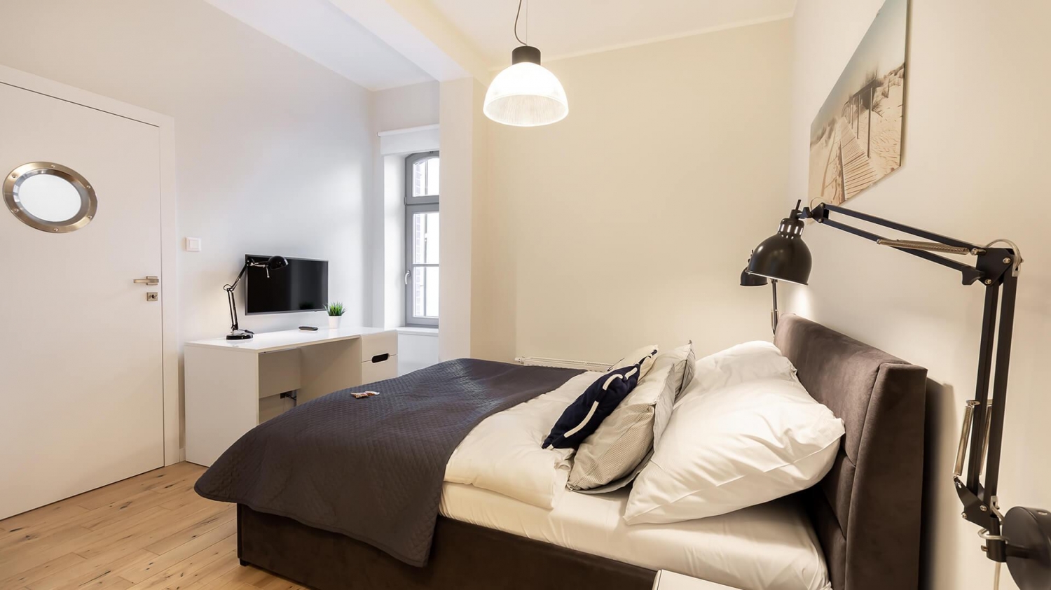VacationClub™ – Rezydencja Kapitańska Apartament 8 mieści się na 1 piętrze prestiżowego, kameralnego budynku, zlokalizowanego w sercu portu pasażerskiego. Dawny Kapitanat Portu BŻB poddany został rewitalizacji i przebudowie, dzięki temu stanowi niepowtarzalny obiekt łączący historyczną architekturę z nowoczesnymi standardami. Jest to znakomita lokalizacja – zarówno w sezonie letnim jak i zimowym, a poczucie bezpieczeństwa zapewnia całodobowy monitoring. Apartament jest w pełni umeblowany i wyposażony. Składa się z 3 pokoi: dwóch sypialni z podwójnym łóżkiem, salonu z rozkładaną i przystosowaną do spania sofą, łazienki z kabiną prysznicową oraz aneksu kuchennego. Na miejscu do dyspozycji Gości jest telewizja NC+, każdy pokój wyposażony jest w telewizor. Strzeżony parking zewnętrzny oddalony jest o 70 metrów od apartamentu. Opłata 30 zł/dobę.