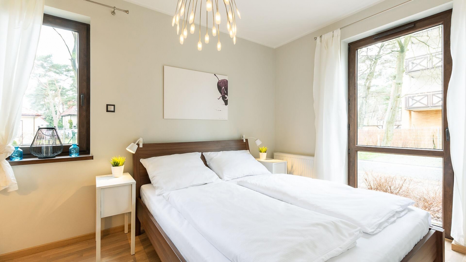 VacationClub™ – Rezydencja Park II Apartament 1 to trzypokojowy apartament zlokalizowany na parterze nowoczesnego kompleksu apartamentowego Rezydencja Park, który położony jest ok. 250 metrów od plaży oraz 250 m od Jeziora Jamno. Znajdują się tutaj dwie 2-osobowe, komfortowo wyposażone sypialnie oraz nowocześnie urządzony salon z rozkładaną sofą. Apartament jest w pełni wyposażony w niezbędne sprzęty: pralkę, żelazko, sprzęty kuchenne, suszarkę. W apartamencie jest łazienka z kabiną prysznicową. Do dyspozycji Gości jest duży taras z meblami ogrodowymi i ogródek. Apartament ten jest idealnym rozwiązaniem dla osób ceniących spokój i wygodny odpoczynek w przyjaznej atmosferze. Na teranie posesji znajduje się bezpłatne miejsce parkingowe przeznaczone wyłącznie dla Gości apartamentu.