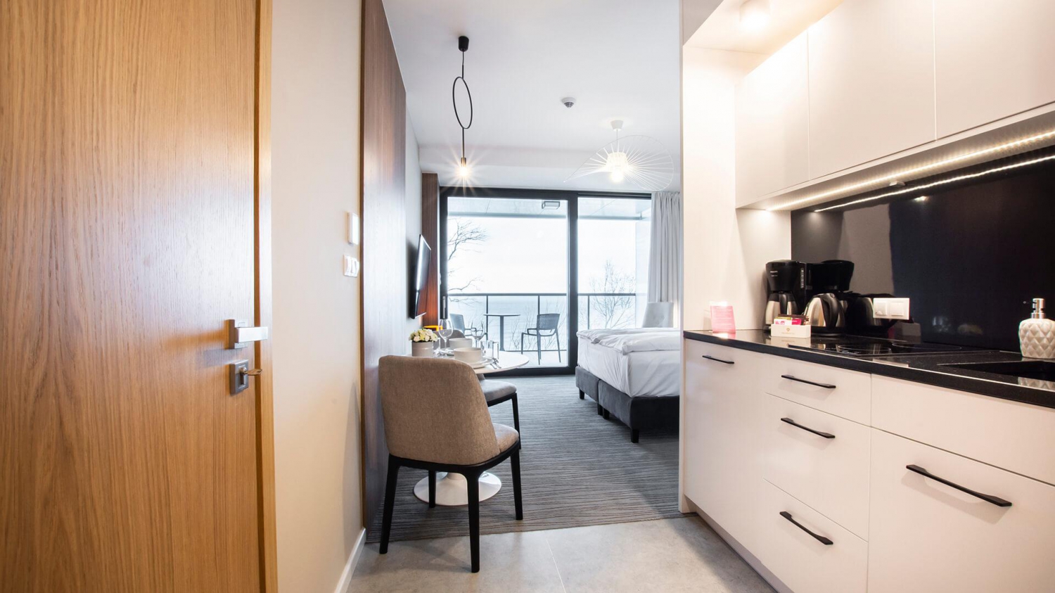 Seaside Apartament 411 zachwyca designem i wygodą, ale jego największym atutem jest widok na morze. Hotel położony jest w sąsiedztwie Ekoparku oraz w pobliżu zacienionych i niezwykle malowniczych tras rowerowych ̶ do Portu Morskiego i do Podczela. Dogodna lokalizacja apartamentu umożliwia dobry dojazd do dworców – kolejowego i autobusowego.