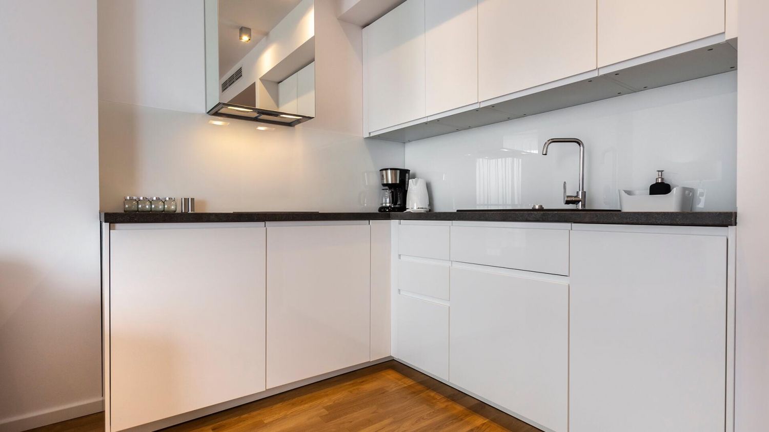 W apartamencie znajduje się aneks kuchenny przystosowany do przygotowywania codziennych posiłków. Do dyspozycji Gości jest sprzęt AGD, m.in. lodówka, czajnik elektryczny, ekspres do kawy, zmywarka, płyta indukcyjna, a także komplet naczyń, sztućce, akcesoria kuchenne, szklanki i kieliszki do wina. Znaleźć tu można wszystko, co niezbędne, by samodzielnie przygotowywać posiłki i cieszyć się wspólnymi chwilami w gronie rodziny lub znajomych.