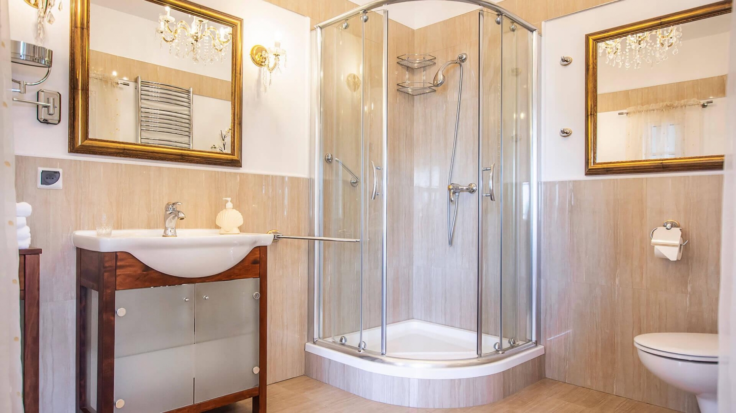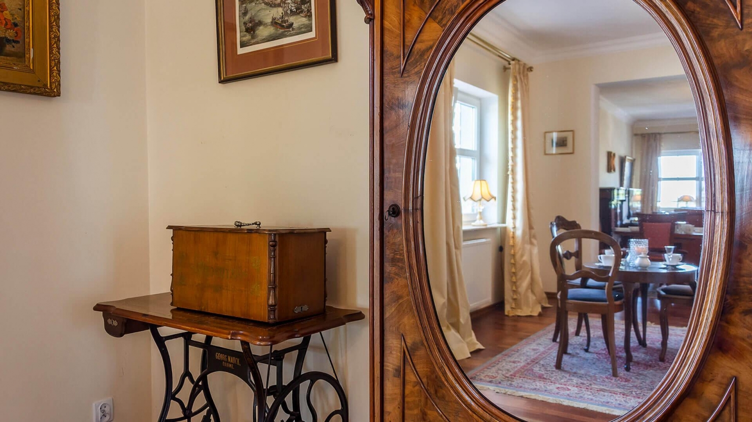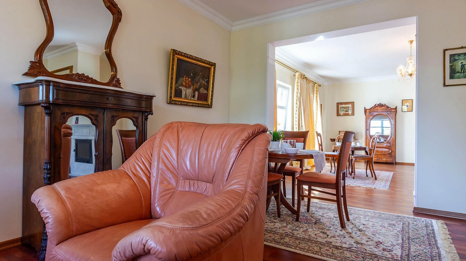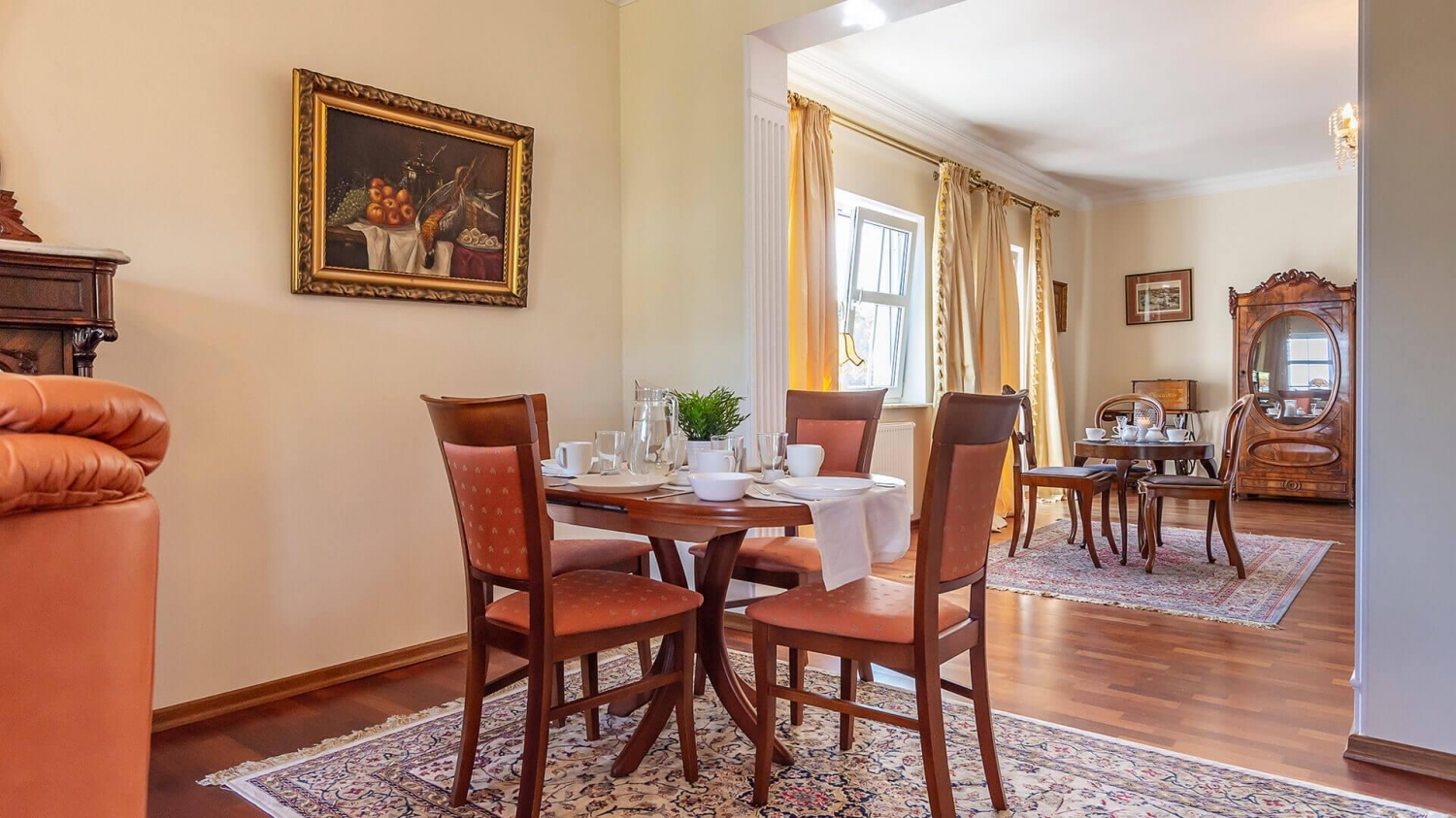 Przestronny salon posiada duży oddzielony barkiem aneks kuchenny gotowy na wspólne przygotowywanie posiłków w eleganckim królewskim otoczeniu. Do dyspozycji Gości znajduje się płyta grzewcza, pralka i zmywarka, opiekacz, ekspres do kawy oraz wszelkie niezbędne przybory kuchenne.