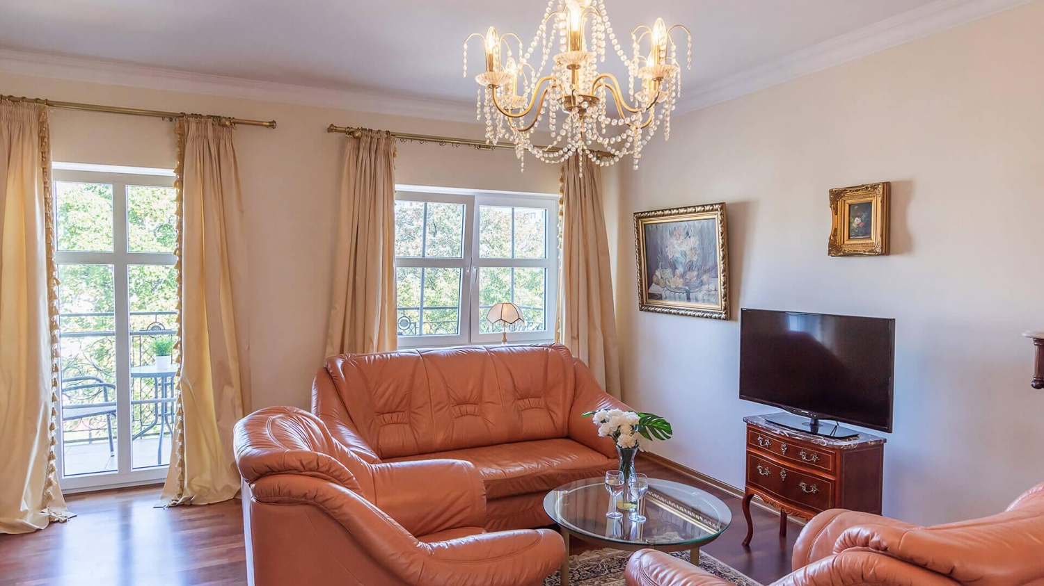 VacationClub™ – Trzy Korony Piastów Apartament 37 mieści się na drugim piętrze wyjątkowo stylowego kompleksu budynków Rezydencja Trzy Korony, który położony jest bezpośrednio przy najnowszej części słynnej promenady tuż przy wylocie Alei Baltic Park Molo i zaledwie 150 m od przepięknej świnoujskiej plaży. Meble i wystrój apartamentu idealnie pasują do stylizacji Rezydencji. W skład powierzchni wchodzi bardzo przestronny salon z rozkładanym skórzanym wypoczynkiem, częścią jadalną i garderobą, bogato wyposażony aneks kuchenny, część sypialna z szerokim łóżkiem małżeńskim i kącikiem kawowym oraz królewska łazienka z kabiną prysznicową. Oprócz wyjątkowego wystroju jego największym atutem są dwa duże balkony z dalszym widokiem na morze. W apartamencie do dyspozycji Gości jest telewizja i bezpłatny bezprzewodowy Internet. Do apartamentu przynależy miejsce postojowe w garażu podziemnym numer 6.
