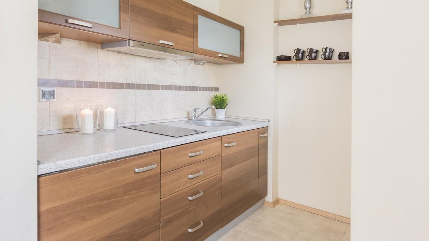 W apartamencie znajduje się bogato wyposażony aneks kuchenny przystosowany do przygotowywania codziennych posiłków. Do dyspozycji naszych Gości oddajemy nowoczesny sprzęt AGD m.in. lodówkę, kuchenkę, a także komplet naczyń – w tym kieliszki do wina, sztućce i akcesoria kuchenne. Wszystko, czego potrzebujesz, by samodzielnie przygotowywać posiłki i cieszyć się wspólnymi chwilami z bliskimi.