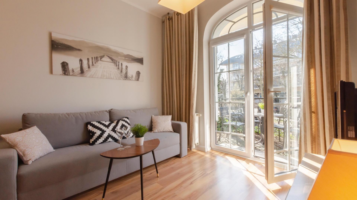 Apartament mieści się w budynku należącym do kompleksu Trzy Korony, położonym przy najnowszej części słynnej Promenady i 200 m od najpiękniejszej polskiej plaży nad Bałtykiem. Wzdłuż deptaku znajdą Państwo mnóstwo atrakcji zarówno dla dzieci, jak i dorosłych. Goście VacationClub™ otrzymują również możliwość korzystania z doskonałej infrastruktury 5-gwiazdkowego Radisson Blu Resort, Świnoujście i Baltic Park Molo Aquapark z pierwszą w Polsce sztuczną falą do surfingu.