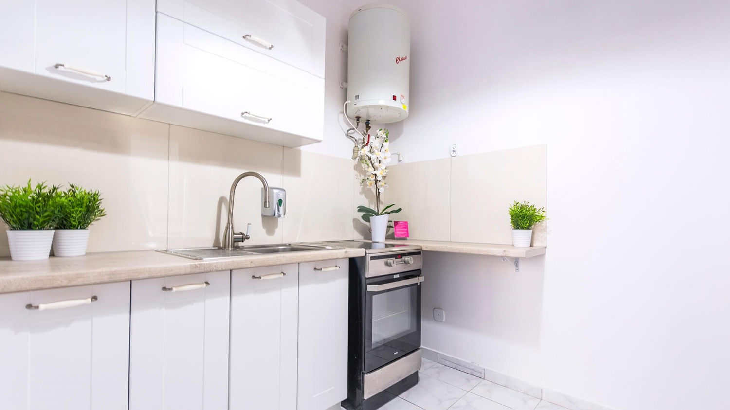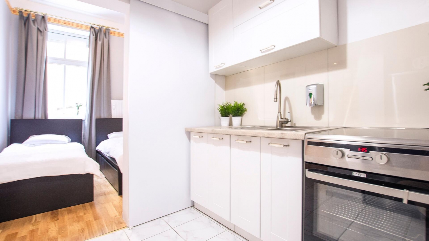 W apartamencie znajduje się bogato wyposażony aneks kuchenny z nowoczesnym sprzętem AGD m.in. lodówką, kuchenką, piekarnikiem oraz kompletem naczyń, sztućców, akcesoriami kuchennymi, szklankami i kieliszkami do wina. Pełne wyposażenie aneksu umożliwia samodzielne przygotowanie posiłków wspólnie z bliskimi.