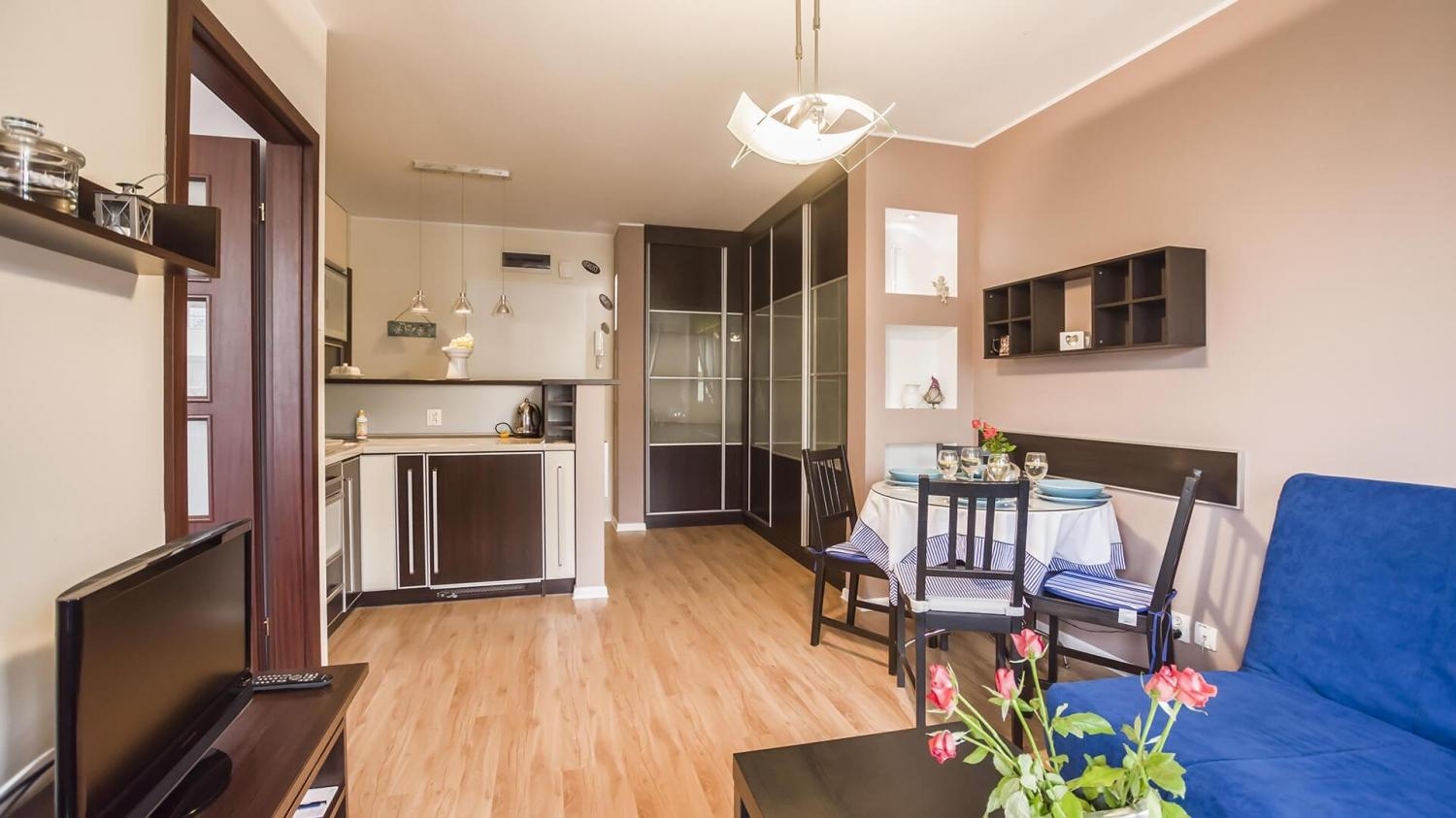 W apartamencie znajduje się bogato wyposażony aneks kuchenny przystosowany do zaspokajania codziennych potrzeb. Do dyspozycji naszych Gości udostępniamy nowoczesny sprzęt AGD m.in. lodówkę, kuchenkę, mikrofalę oraz komplet naczyń, sztućce, akcesoria kuchenne, szklanki i kieliszki do wina. Wszystko, co potrzebne by samodzielnie przygotować posiłki i cieszyć się wspólnymi chwilami z bliskimi.
