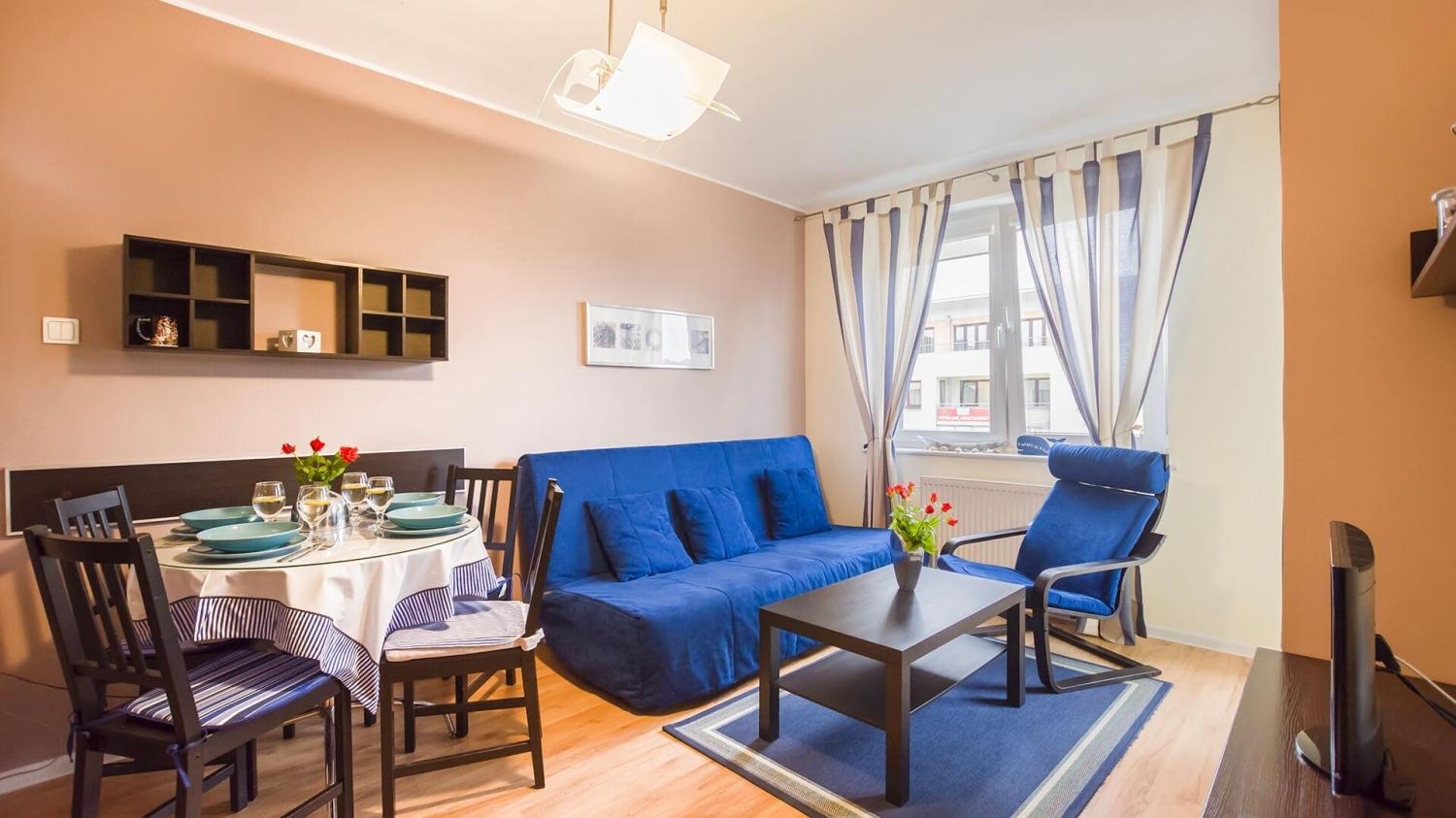 Apartament znajduje się w uzdrowiskowej części Kołobrzegu, w otoczeniu zieleni Parku Nadmorskiego. W odległości 100 m od apartamentu znajduje się przystanek autobusowy, a kursujący tam autobus zawiezie Państwa do centrum miasta, dworca, a nawet w okolice Portu i kołobrzeskiego Molo. Wielką zaletą tego miejsca jest ciche i spokojne podwórze z ogródkiem, mieszczący się tam plac zabaw jest rajem dla dzieci. Dodatkowo Goście mogą się udać na odpoczynek na taras widokowy znajdujący się na dachu apartamentowca. Tuż po wyjściu z obiektu spokojnym spacerem dotrzeć można do pobliskiego Amfiteatru oraz Kamiennego Szańca, w których odbywają się wieczorne imprezy, koncerty, kabarety oraz przedstawienia.